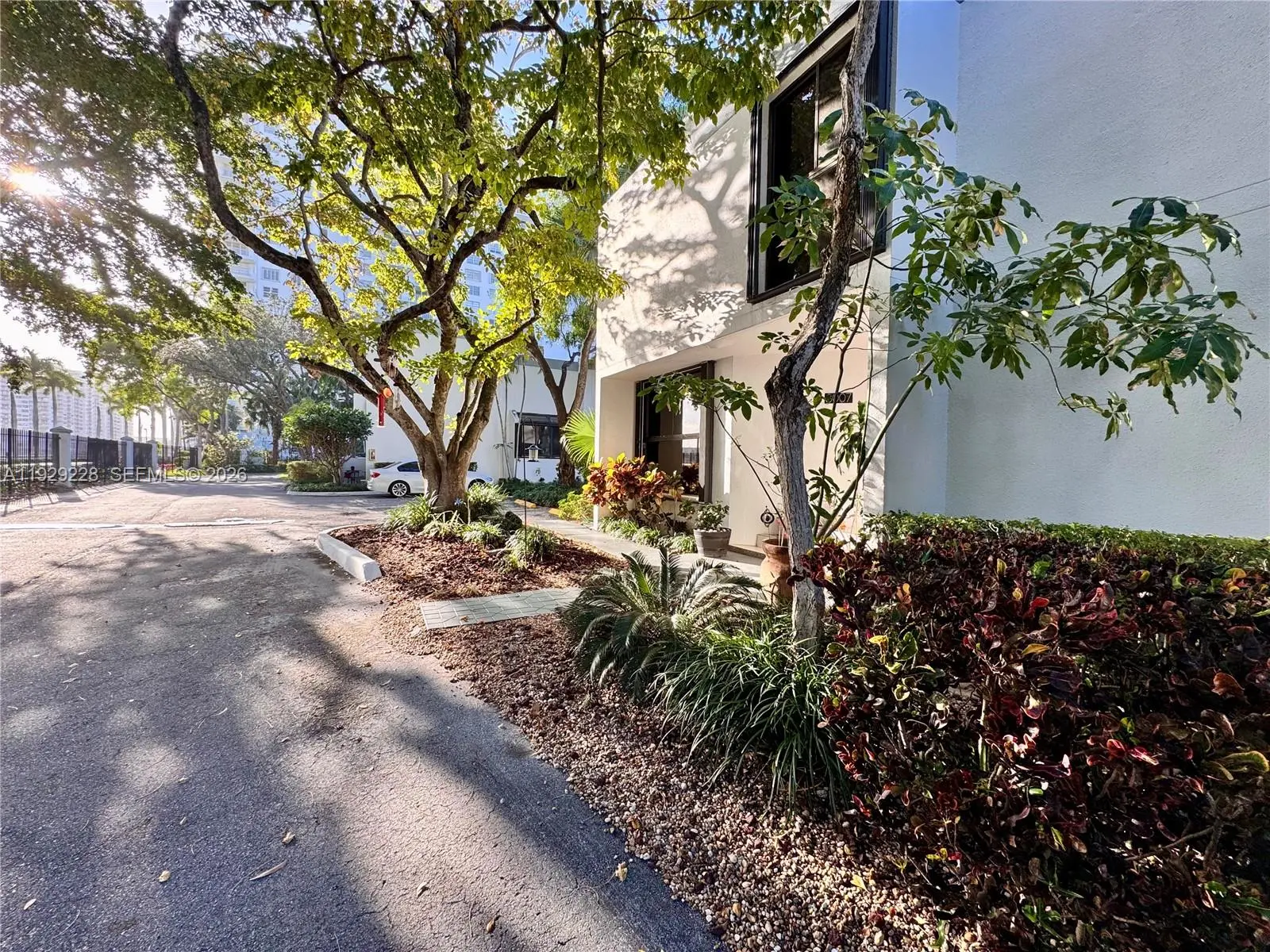 Courtyards of Aventura is a 43-unit town home development located on Williams Island Boulevard across from Maule Lake and Veterans Park, a beautiful waterfront street offering easy access in, out, and around the City of Aventura. This pet- and family-friendly community is within walking distance of shopping, dining, groceries, and a short ride to Aventura Mall and the beaches. This property features a loft-style floorplan, 1 of 6 available at the development that benefit by not sharing any major walls with other units, making it feel like living in a single-family home. The property has received many important upgrades, including impact sliding glass doors on the ground level and accordion shutters for the entire home. This floorplan offers 25’ foot high ceilings, floor to ceiling glass, a working fireplace, 2 large bedrooms on the 2nd floor with private ensuite bathrooms. Also included is a third guest powder room on the ground level, spacious walk-in closets, custom wood shelving, a large storage room, granite counters and backsplash, modern lighting and window treatments, SS open kitchen with solid wood cabinetry, extra capacity washer and dryer, 2 large porches, one off the kitchen, making it perfect for grilling. The property also includes 2 assigned parking spaces alongside the residence, making deliveries, loading, and unloading very simple. A true favorite among young families and dog owners, the Courtyards of Aventura is a lovely place to call home and a great value.