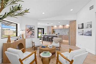 A rare opportunity to own a fully modernized home in Boca Woods country club. This fully renovated home features a bright, open floor plan with soaring ceilings, abundant natural light, and high-end finishes throughout. The gourmet kitchen boasts Thermador appliances, Taj Mahal quartzite countertops, a wine room, custom cabinetry, a workstation sink, and an oversized hidden walk-in pantry. The Living and dining areas flow seamlessly to the outdoor space, perfect for entertaining. The Primary Bedroom suite has a spacious layout with a shower fit for two, a soaking tub, and custom vanities with honed leather marble countertops. 2025 Major upgrades include: new metal roof with gutters, new impact-glass windows and doors, new custom front door, new Rheem A/C with warranty, new saltwater pool system, new diamond-Brite pool with sandblasted marble pavers, and a custom entertainment wall with electric fireplace. Both TVs convey. Staging furniture optional. Mandatory Country Club membership is $120,000. Boca Woods Country Club is a golfer's paradise with two championship golf courses, casual and fine dining restaurants, two gated entrances, Racquets sports including Tennis and pickleball, a beautifully renovated spa and gym, card rooms, and many social events throughout the year.