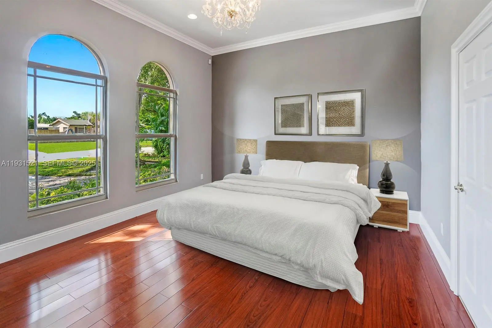 Welcome to this exceptional, fully furnished, resort-style rental situated on an oversized lot in East Boca Raton. The main level features 6 bedrooms and 4 full bathrooms, while the second floor offers a loft living area with a private bedroom and a separate full bathroom. The detached guest house is a standout feature of this property, privately positioned alongside the pool. It offers an additional bedroom and full bathroom, providing a self-contained living space that enhances the home’s flexibility and appeal. This luxury residence includes impact windows, 11-foot ceilings, three-zone AC, LED lighting, surveillance system, and a heated pool and spa surrounded by beautiful tropical landscaping. Ideally located minutes from the beach, Mizner Park, shopping, dining, and major highways. Available for annual or seasonal rental with a minimum 6-month lease.