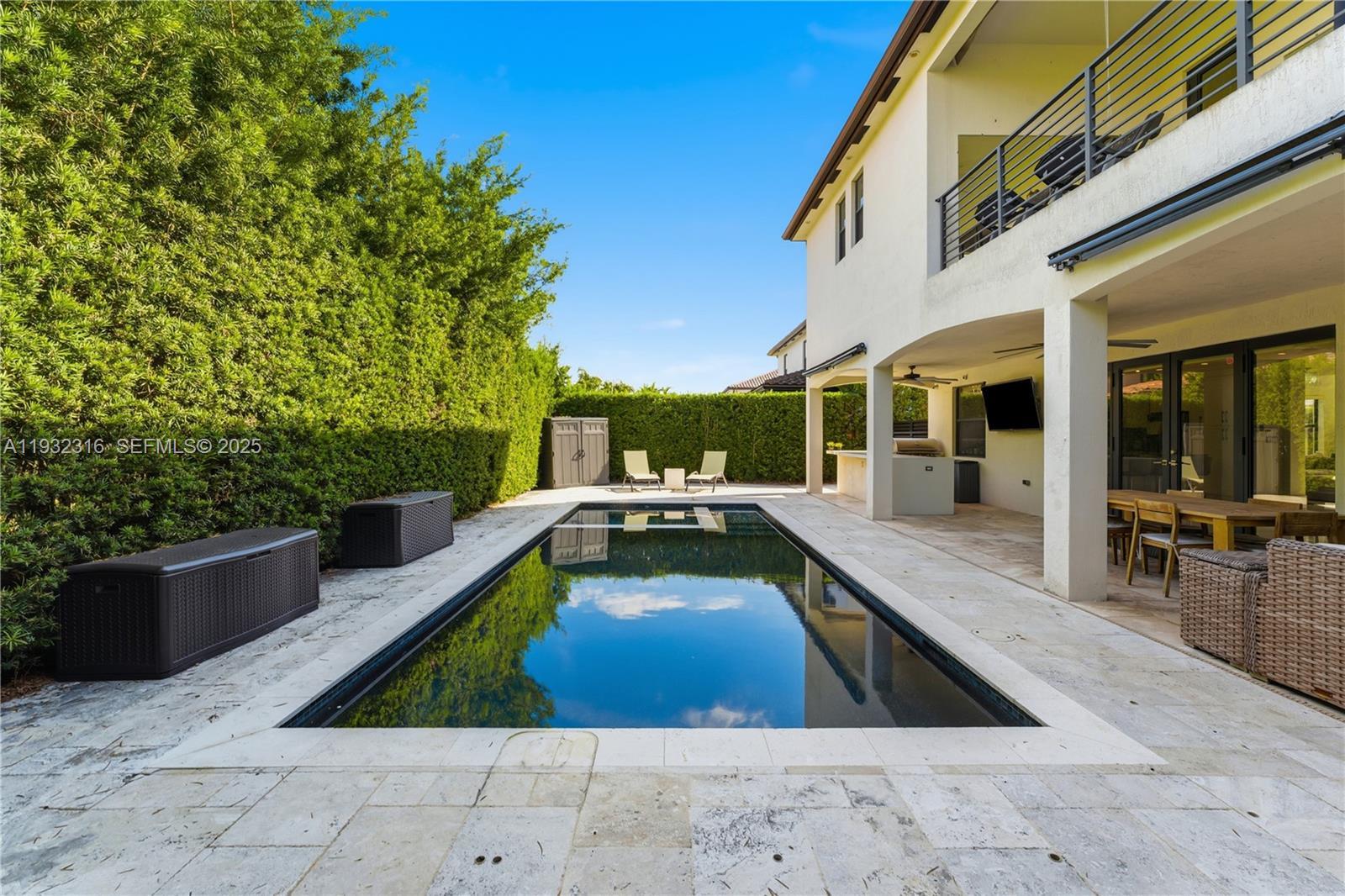 Modern elegance meets exceptional functionality in this beautifully upgraded residence, offering 4 bedrooms, 4 bathrooms, and a versatile den designed for today’s lifestyle. The heart of the home is a gourmet kitchen featuring custom wood cabinetry, marble countertops, and premium stainless-steel appliances, highlighted by a built-in Miele espresso coffee machine—perfect for elevated everyday living. The thoughtfully designed first floor includes a full bedroom with cabana bath, ideal for guests or multigenerational living. Step outside to your private outdoor entertainment space, complete with a fully equipped outdoor kitchen showcasing porcelain waterfall countertops, a 43-inch stainless steel grill, dual-tap kegerator, beverage cooler, and icemaker, making it perfect for hosting and entertaining year-round. The backyard is finished with low-maintenance artificial turf throughout, while the pool heater and chiller (installed in 2020) allow for enjoyment in every season. This home seamlessly blends modern design, luxury upgrades, and effortless indoor-outdoor living in a prime Miami location.
