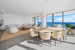 Indulgent, turn-key oceanfront residence offering breathtaking sunrises over the ocean and golden sunsets over the intracoastal waterway. Fully furnished with refined Artefacto furniture, this half-floor, 3-bed, 3.5-bath condo welcomes you via private, facial-recognition elevator, soaring 10-ft ceilings, and elegant Serena stone floors. Surrounded by tranquil blue ocean, the living room features a sleek Boffi kitchen with premium Gaggenau appliances and a terrace. Exceptional west-facing primary suite offers a private terrace, custom walk-in closets by B&B Italia, and a spa-inspired bath, sunlit media room, 3 parking spaces. Enjoy luxury boutique living with resort-style, beachfront amenities: beach club, 2 pools, fitness center, owner’s lounge with catering kitchen, spa pavilion, and more.