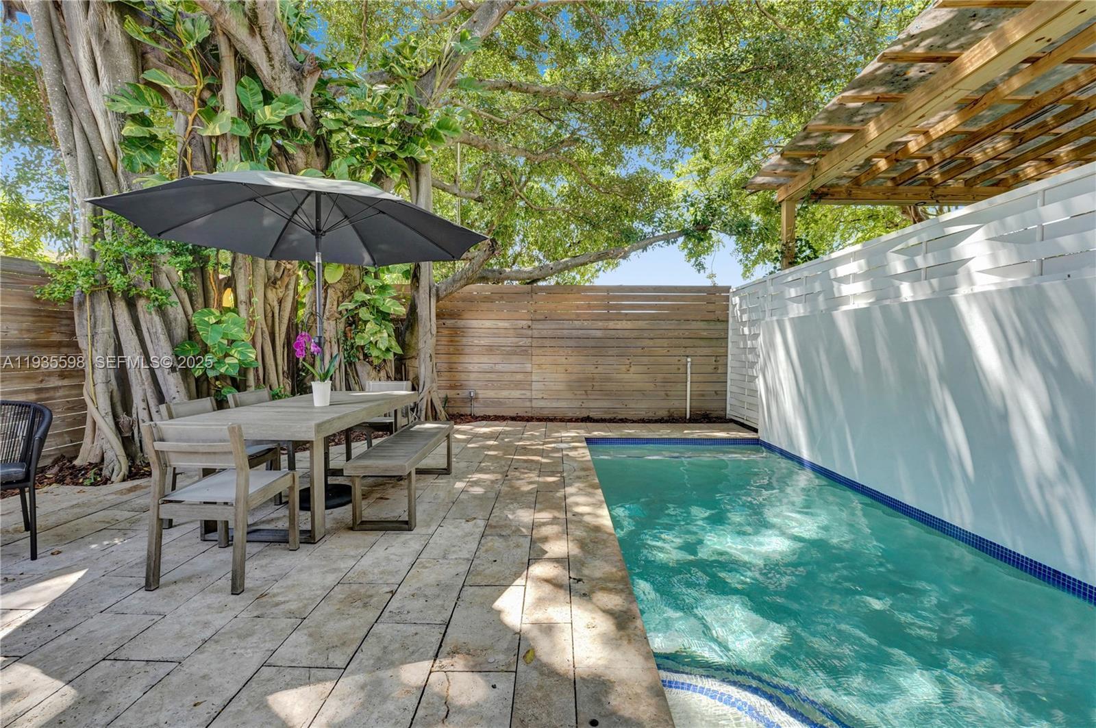 Modern and stunning townhouse with private pool and spacious backyard + rooftop, perfect for entertainment. High ceilings in both levels, impact windows and doors, and top-of-the-line finishes. The primary bedroom has an ample walk-in Italian closet. Beautiful kitchen design with Italian cabinetry, quartz countertops and LED lighting, including an island with seating area. One covered parking + two spaces on driveway. Amazing location in the middle of Miami! Minutes away from Brickell, Downtown, Coconut Grove, Coral Gables, the beach, and easy access to the expressway. Short stroll to restaurants, shops, bakery, supermarkets, parks, and Vizcaya Metrorail station. Great schools close by. AVAILABLE MARCH 1ST, 2026.