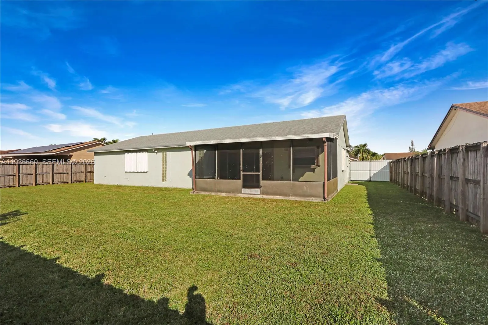 Spacious 4-bedroom, 2-bathroom home featuring tile flooring throughout and a large primary bedroom with a private en-suite bath. This great property is equipped with hurricane shutters and a 5 year old roof, offering peace of mind. Enjoy outdoor living with a spacious screened-in patio overlooking a fully fenced yard- ideal for entertaining, pets or relaxing in privacy. NO HOA, providing flexibility for homeowners or investors. Conveniently located near schools, shopping, and major roadways, this home presents a great opportunity.