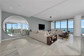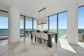 Welcome to an Oceanfront South Corner Turnkey Residence with a private elevator landing, a rare opportunity with a unique floor plan that offers bigger bedrooms than any other unit in the building as well as a linen closet and an office/den. This 3Bed, 3.5 baths has the best panoramic views, completely unobstructed to Golden beach. Residence comes with high end furnishing as well as the highest upgrades like Marble floors, Boffi custom Kitchen and Shadetec window treatments throughout the residence that create a seamless blend of modern coastal luxury and refined comfort. Sitting directly on the sand enjoy stunning sunrise coffee and sunset lounging effortlessly from your residence. The building features 24 hr. concierge, facial recognition access, and resort style amenities that include beach service, an east and west pool decks, spa pavilion with a yoga studio, sauna, ice room and Gym.
