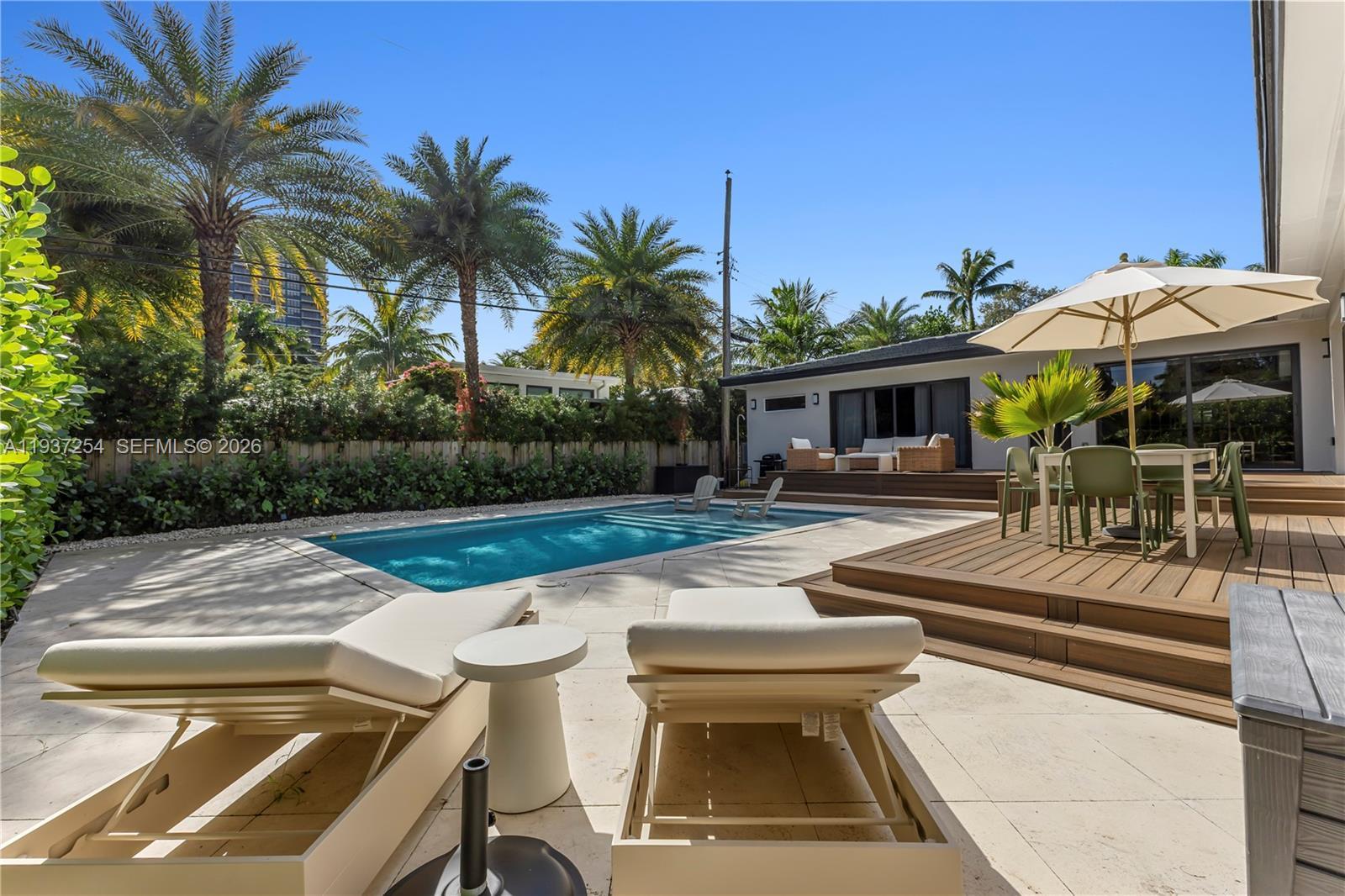 Welcome to this beautifully renovated and fully furnished residence offering modern luxury with 4 bedrooms and 3.5 bathrooms. The home features porcelain tile floors, recessed lighting, custom millwork, and bespoke closets throughout. Originally a 1,300 SF home, it has been thoughtfully expanded to 2,478 SF, including a stunning 600 SF primary suite. The addition also incorporates a formal dining room, laundry room, a fourth bedroom with en-suite bath, and a convenient cabana bath. The chef’s kitchen is equipped with Thermador appliances, custom cabinetry, and premium finishes. Additional upgrades include central A/C with two new units, new propane tank, new hot water heater, and updated PVC plumbing. The exterior offers a private backyard oasis with a new heated pool, new deck, refinished semi-circle driveway, additional side driveway, new landscaping, tiled front porch, and a new privacy fence. The property is pre-wired for a generator. Offered fully furnished, the home includes a curated selection of high-end furniture from Poterry Barn, West Elm, Crate & Barrel, and other top-tier brands, allowing for a truly turnkey, move-in-ready experience.The owner thoughtfully designed and renovated the entire home for his family, including one son and one daughter. Due to an unexpected company relocation, the property is now being sold as-is and fully furnished, with possession delivered on or after May 31.