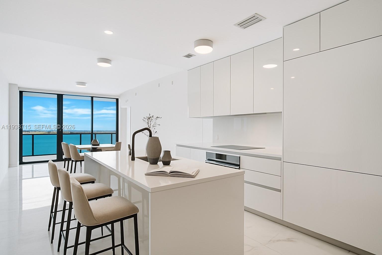 This brand-new luxury condo offers breathtaking panoramic views of Biscayne Bay, stretching from Key Biscayne to Fort Lauderdale and the open ocean beyond. The elegant 1-bedroom, 2-bath plus den residence features high-end appliances, floor-to-ceiling sliding glass doors, upgraded fixtures, glass-enclosed showers, and backlit mirrors throughout. The primary suite includes a walk-in closet with custom shelving and automatic shades, including blackout shades for added comfort. Residents enjoy an exceptional array of resort-style amenities, including a state-of-the-art fitness center, multiple pools, spa, yoga studio, basketball and tennis courts, movie theater, game room, children’s playroom, and outdoor grilling areas. Ideally located in Edgewater, the building offers quick access to Midtown, Wynwood, Miami Beach, and Miami International Airport. This is a rare opportunity to live in one of Miami’s newest and most desirable waterfront condominium residences.
