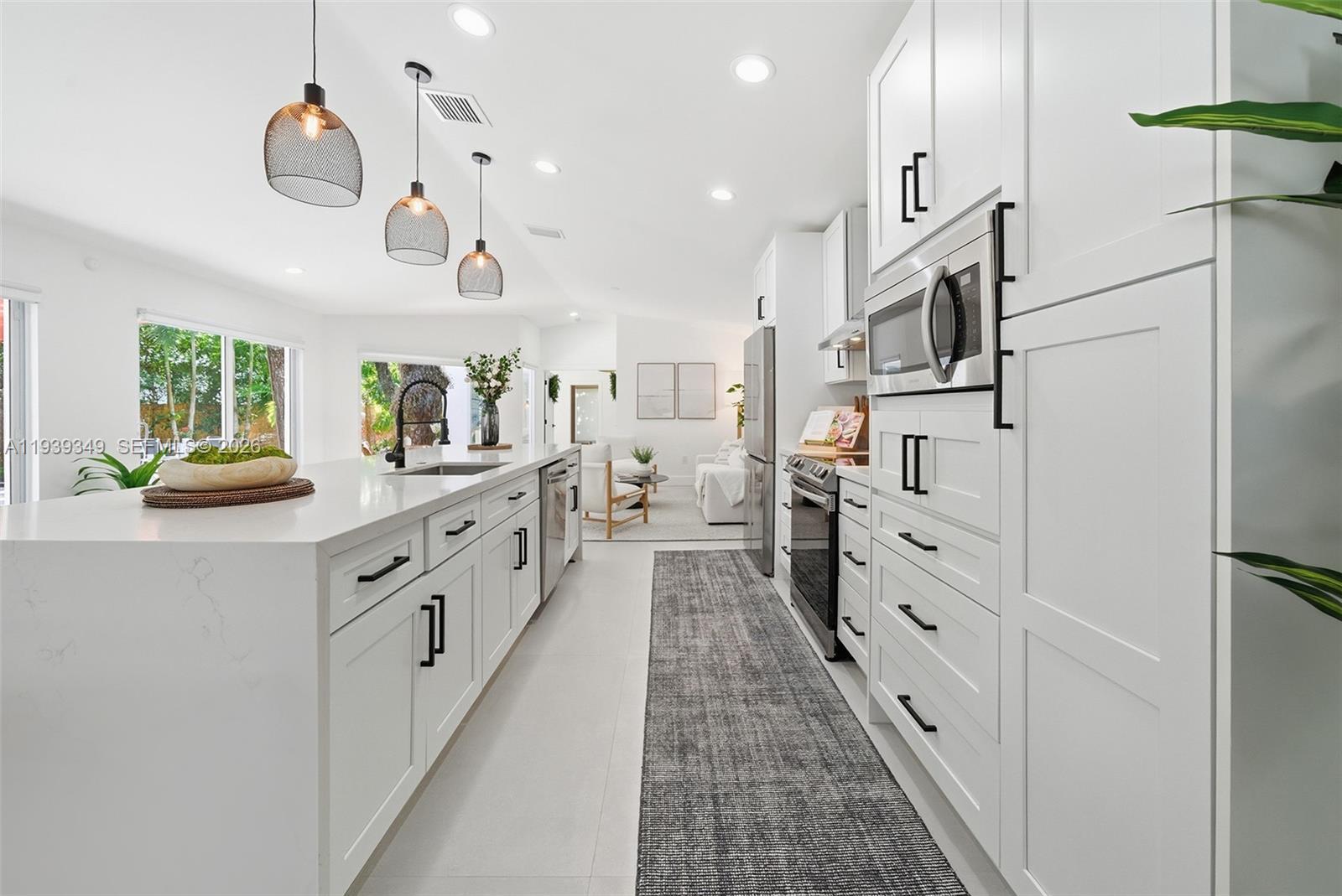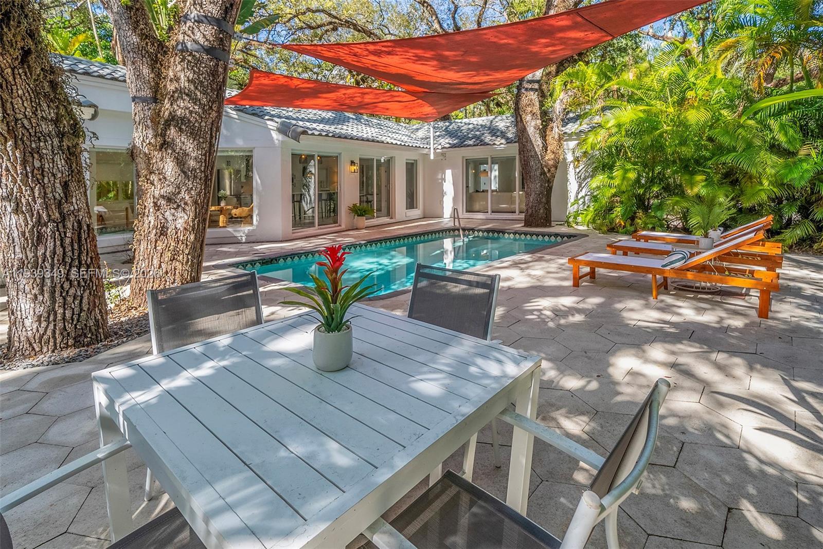 Nestled in the desirable South Coconut Grove neighborhood, this 4-bedroom, 2.5-bathroom home feels like a private tropical retreat, surrounded by spectacular mature foliage and oak trees. Beautifully renovated and move-in ready, this one-story corner-lot residence features a modern kitchen and bathrooms, all impact-glass windows and sliding doors, and a dramatic wall of windows that fills the home with natural light while offering serene views of the garden and pool from nearly every room. The fourth bedroom is currently configured as a family/media room but can easily be converted back to a bedroom. Enjoy spacious gated parking behind an electric gate and the convenience of walking or biking throughout the Village of the Grove. Ideally located near Miami’s best urban neighborhoods, this home offers the perfect blend of privacy, charm, and accessibility.