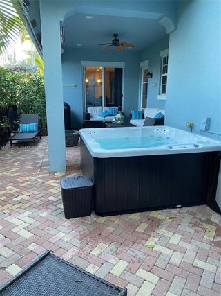 Fabulous home available in Botanica! This Bimini model features 3 bedrooms and 2 1/2 baths and is one of the only single-story homes in the community. The home features an upgraded kitchen with quartz counters, glass-tile backsplash, & stainless GE appliances. All windows were upgraded to hurricane impact, and new AC installed in 2022. Security system available. Additional features are hardwood floors in bedrooms, upgraded on-suite marble master bath, and 2 walk-in closets in the master suite. Full size laundry machines in laundry room. The house has an attached 2-car garage with entry behind the home. The backyard is a herringbone-brick courtyard including a 4-person spa and large covered patio, perfect for relaxing. The front covered porch looks out over a small park without any houses directly in front. Community features heated pool, nature preserve, parks, jogging trail, shared greenspaces, gazebos, and lake areas. Walk right to the Sea Plum shops (Publix, Starbucks, restaurants, vet, salon, etc.) which makes life easy! Great Jupiter schools and just 3 miles to the beach. Original owner/agent has lived in the house since 2009. Also listed for rent, owner willing to sell fully furnished as well. Low HOA fee $703/quarter. Owner/agent