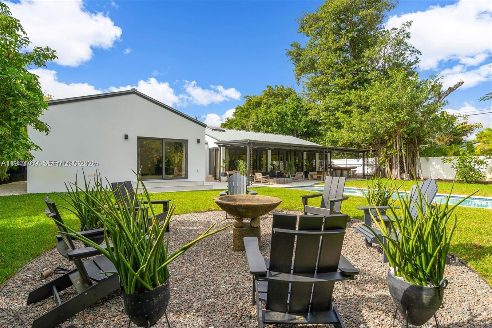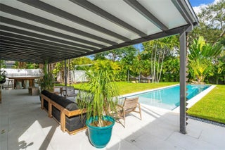 Stunning modern oasis in Miami Shores, fully renovated in 2025. This light-filled home features clean contemporary lines, cathedral ceilings, Versace accent tiles, Italian ceramic bathrooms, ceramic flooring, Gaggenau appliances, Italian quartz countertops, and hurricane-impact windows/doors. Major upgrades include a 2024 metal roof, new AC, dual water heaters, and a skylight. Four parking spaces. Enjoy a zen garden, 1,100+ SF of covered decking, and a 45-ft heated lap pool. Oversized double lot, minutes to Miami Beach, Bal Harbour, and the Design District. Top schools nearby. Exclusions: Dining room chandelier, all freestanding mirrors, artwork, and furniture. Seller reserves the right to remove or replace certain decorative items prior to closing. OPEN HOUSE SATURDAY 1-3PM