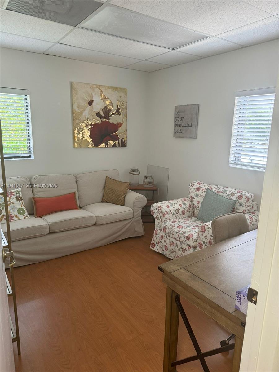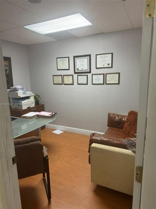 The office offers a calm layout suited for medical or various therapy practice. A welcoming reception area with comfortable seating, six private rooms each designed for flexibility. A small pantry area is set apart for office staff use, equipped with sink and space for basic appliances. The overall layout is efficient quiet and intuitive, creating a space that supports both clients comfort and professional workflow.