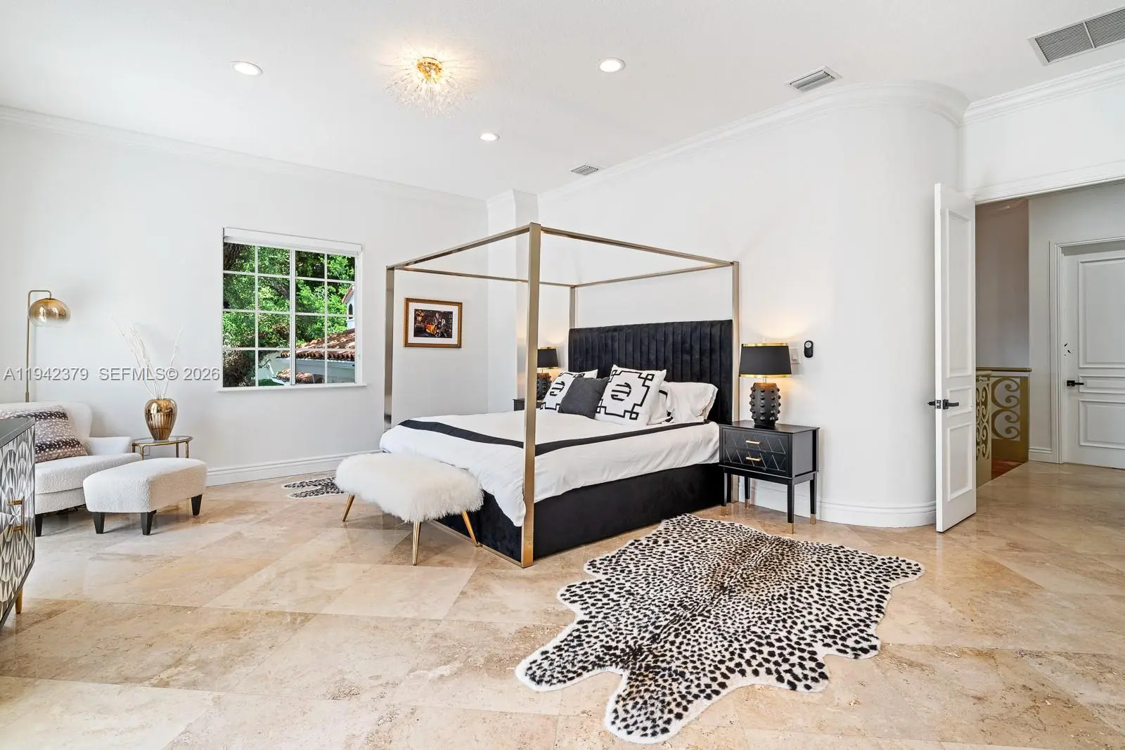 Newer vintage (2003) Mediterranean Revival style 2 story, incredibly spacious, light and bright home with an A+ address just steps to the Biltmore Hotel, Salvadore Park and the Venetian Pool. This close to 5000 square foot home has 14' tall ceilings and tall Palladian windows that bring in the light and create a sense of wide-open airiness throughout. The 13,875 square foot lot is walled and gated. The 2nd floor primary bedroom suite measures 24'X20' and has 2 huge walk-in closets. There are 3 other bedrooms upstairs and 1 bedroom down plus a maid's bedroom & bath plus 2 offices. Foyer, formal living room, family room, formal dining room, pool, 2 car garage. Floor plan available.