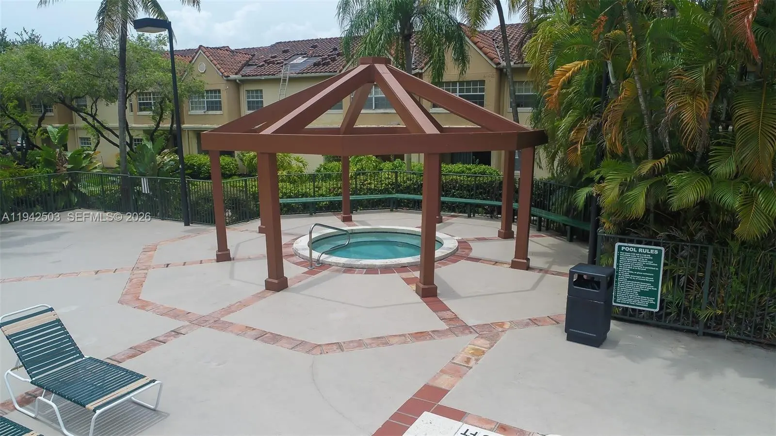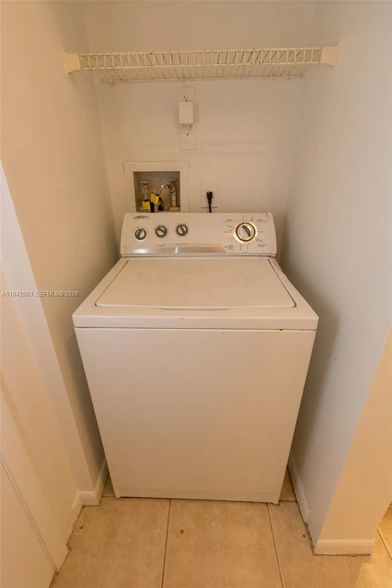 Experience luxury living in this stunning 1-bedroom, 1-bathroom condo located within the secure, family-friendly gated community of La Hacienda. This second-floor residence boasts vaulted ceilings and tile flooring throughout, complemented by modern light fixtures and an open-concept kitchen with newer appliances. For your convenience, the unit includes an in-home washer and dryer and one assigned parking space. Residents enjoy premium amenities including a swimming pool, clubhouse, and gym, all protected by 24/7 security. Perfectly situated for commuters, you'll have rapid access to the 826, I-95, and I-75, and find yourself just minutes away from top-tier shopping, dining, and healthcare.