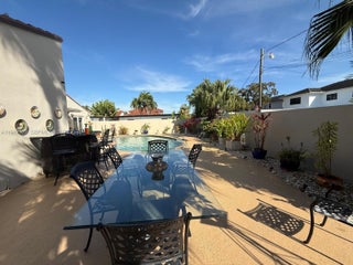 Step into your own private Oasis!!! Beautifully updated 4BR/2BA pool home on an almost ¼-acre corner lot. Home is larger than tax roll per owner. Solid CBS construction with newer roof, electric gated entrance, and circular stamped concrete driveway. Fully landscaped front and backyard with landscape lighting and sprinkler system. Hurricane impact windows and doors throughout. Interior features include marble floors throughout, freshly painted interior, custom window treatments, wood interior doors, ceiling fans, and two A/C units. Updated kitchen with stainless steel appliances and wine cooler. Washer, dryer, and freezer included. Updated bathrooms and Titan water heater. Enjoy a private backyard oasis featuring a pool with new pool equipment, covered concrete terrace, convenient pool bath access, planters, outdoor furniture, and fruit trees. Security camera and alarm system with Vivint. Truly turnkey and move-in ready.