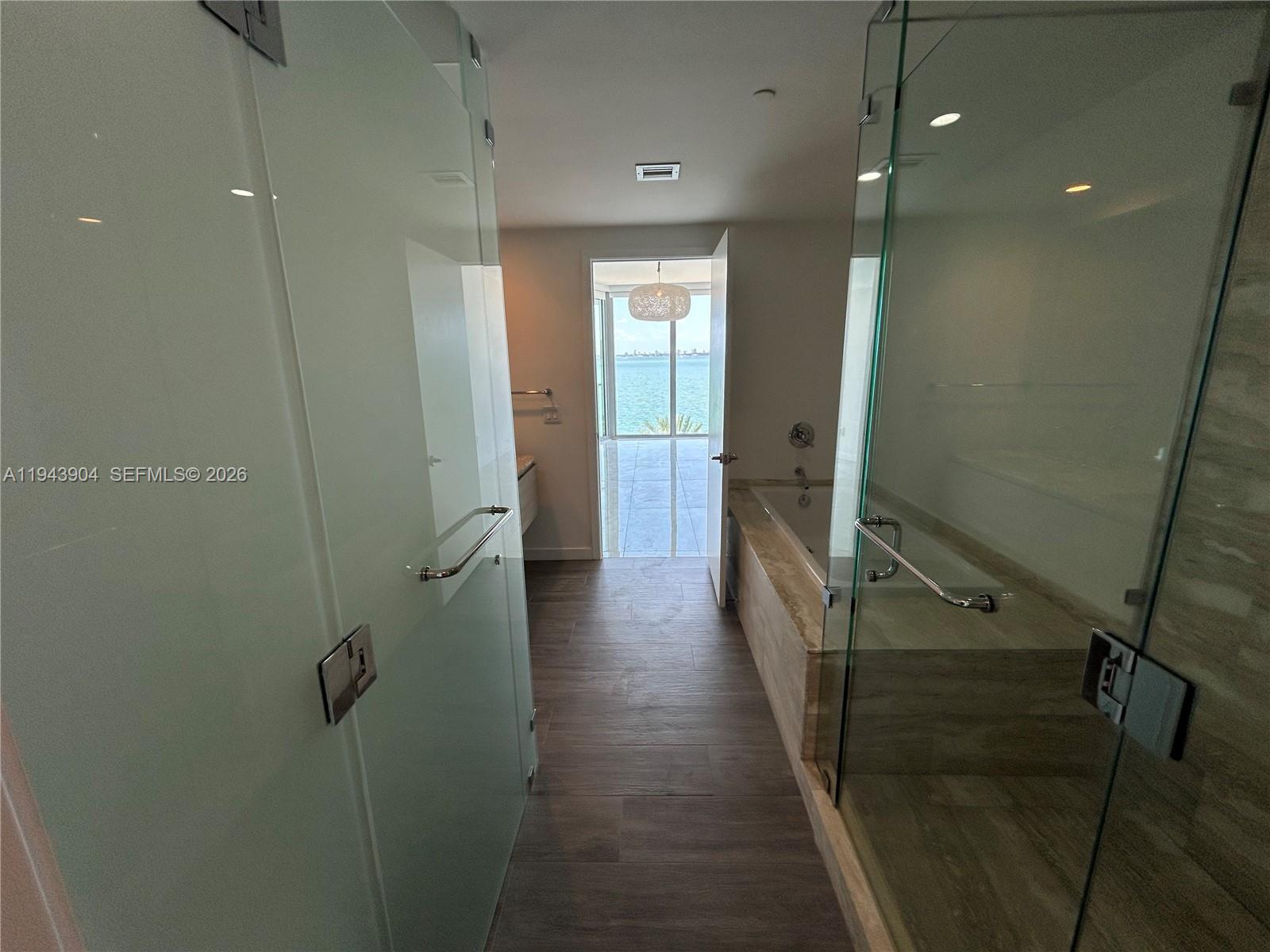 LOCATION, LOCATION, LOCATION. Beautiful 1 + den, 2 bath corner unit. Floor to ceiling windows, revealing incredible bay views from the balcony. Top of the line appliances, custom flooring, custom closets, and even a semi-private elevator. 1 assigned parking on the same floor. Luxury building that has resort style amenities; beach, cabanas, two pools, tennis courts, dog park, state of the art gym, and spa. Incredible location; 5 minute walk to whole foods, and close to all the shops and restaurants of midtown and wynwood. Special assessment $750/month as of 5/1/25 for 12 months. TENANT OCCUPIED PAYING $4,350 A MONTH UNTIL 2/28/2027, SO PROOF OF FUNDS AND ADVANCE SCHEDULED SHOWING REQUIRED.