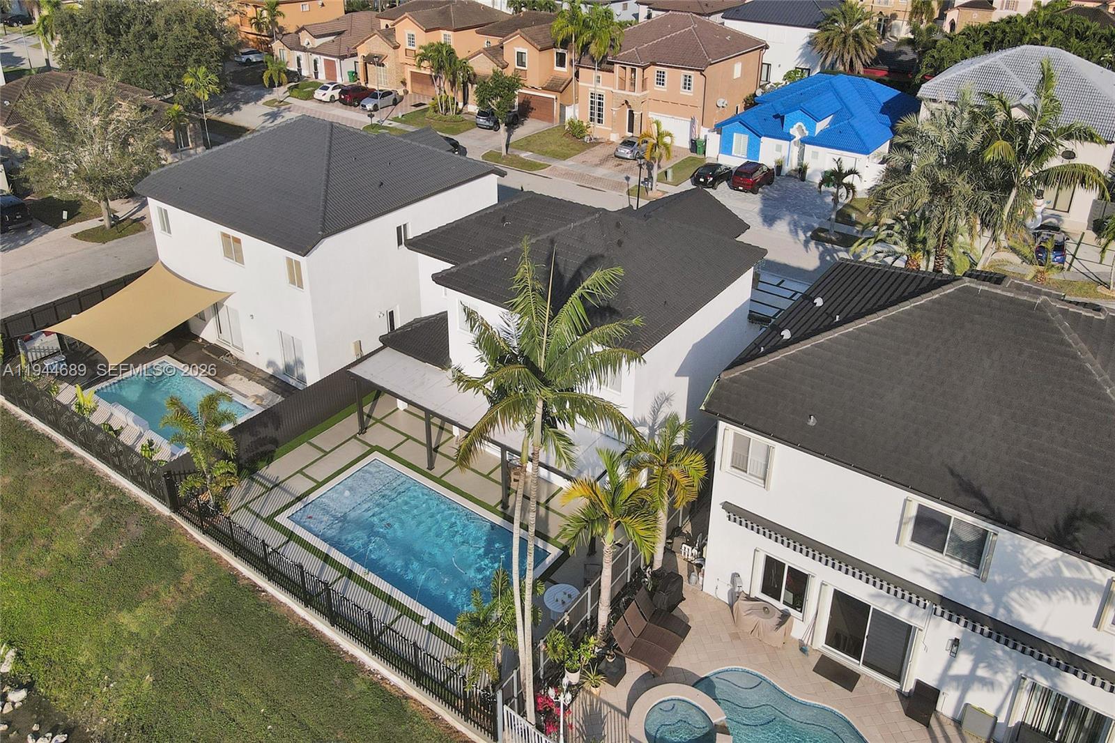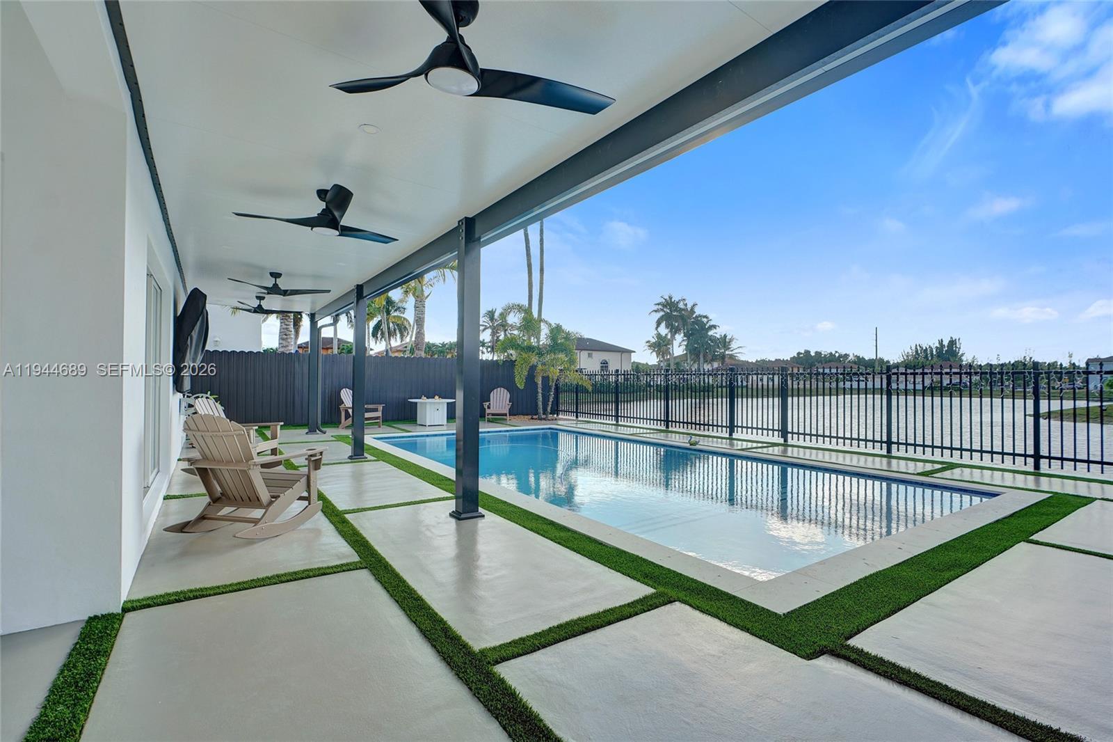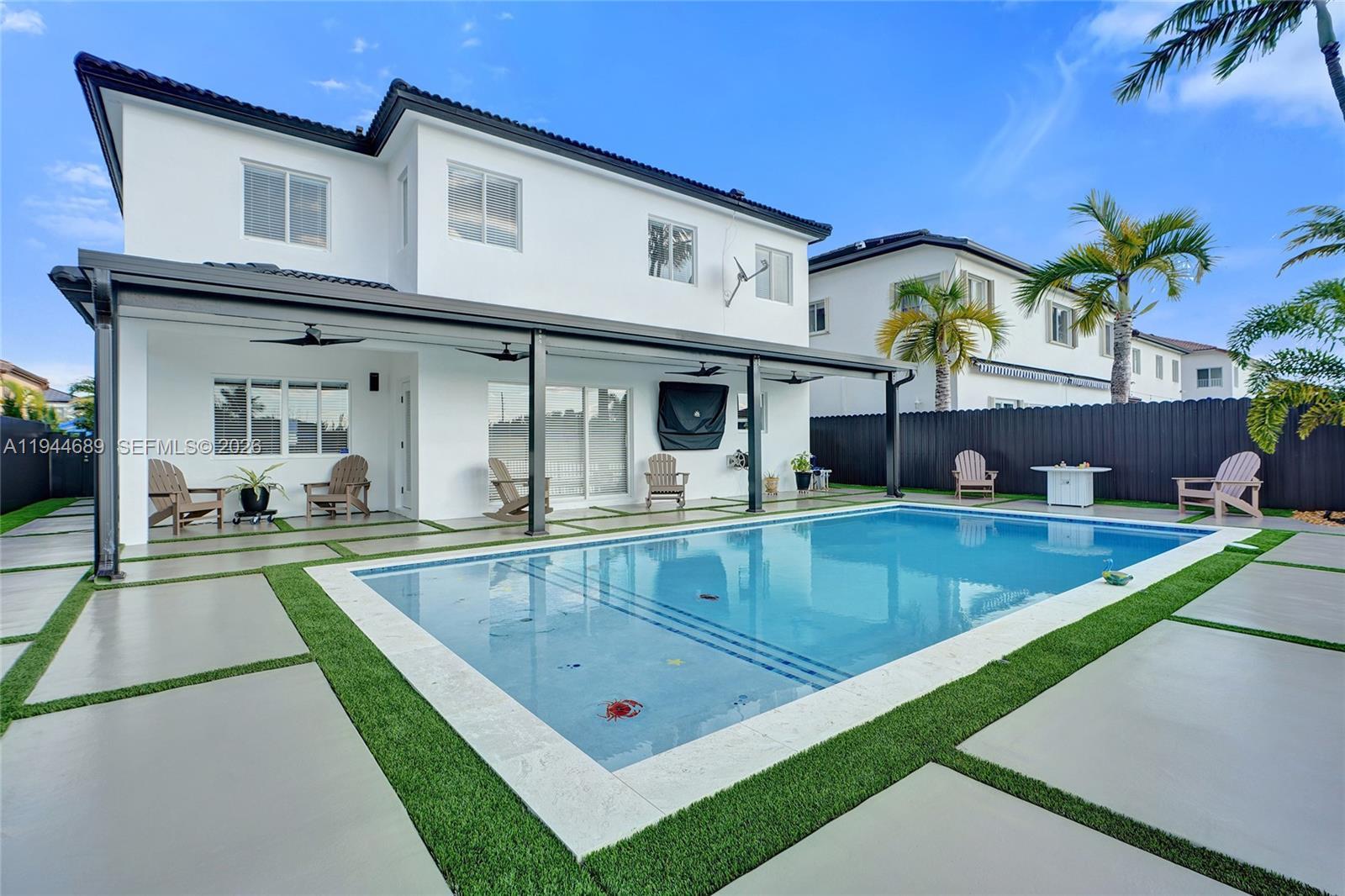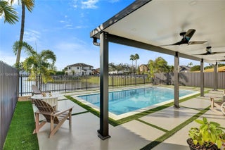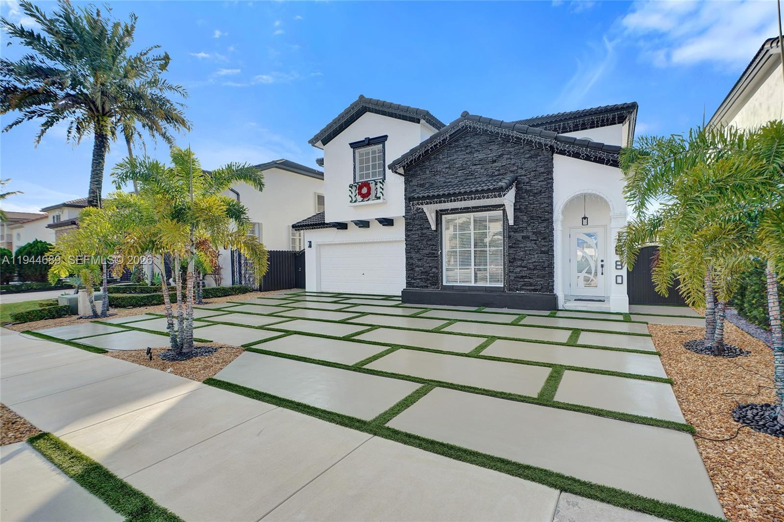 Beautifully updated 4-bedroom, 3-bath modern residence offering porcelain flooring, soaring ceilings, and an expansive open-concept kitchen with high-end finishes. Features include a two-car garage with EV charging, covered terrace, contemporary pool with LED lighting, and serene waterfront views. Move-in ready with outstanding curb appeal, located in a secure, non-HOA community. A truly exceptional opportunity.