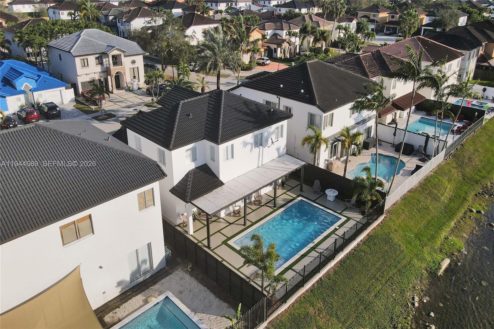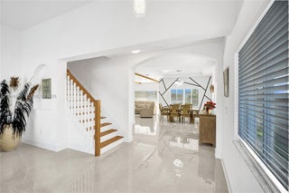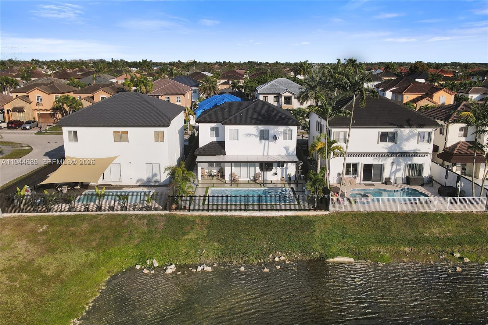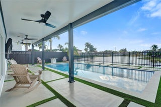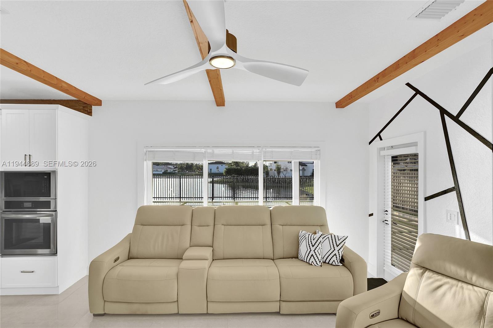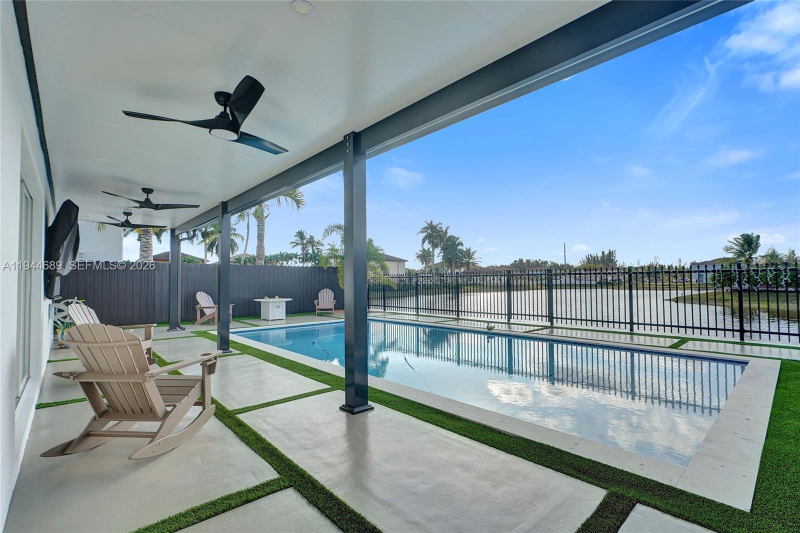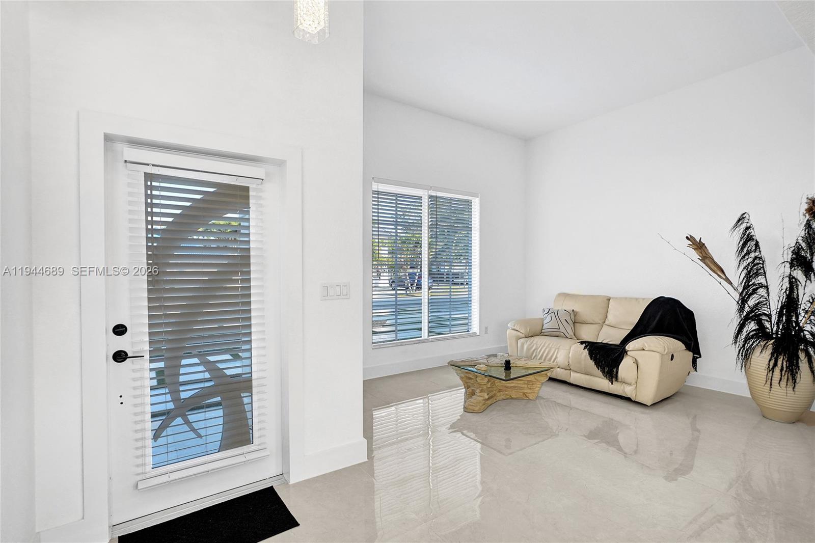 Beautifully updated 4-bedroom, 3-bath modern residence offering porcelain flooring, soaring ceilings, and an expansive open-concept kitchen with high-end finishes. Features include a two-car garage with EV charging, covered terrace, contemporary pool with LED lighting, and serene waterfront views. Move-in ready with outstanding curb appeal, located in a secure, non-HOA community. A truly exceptional opportunity.