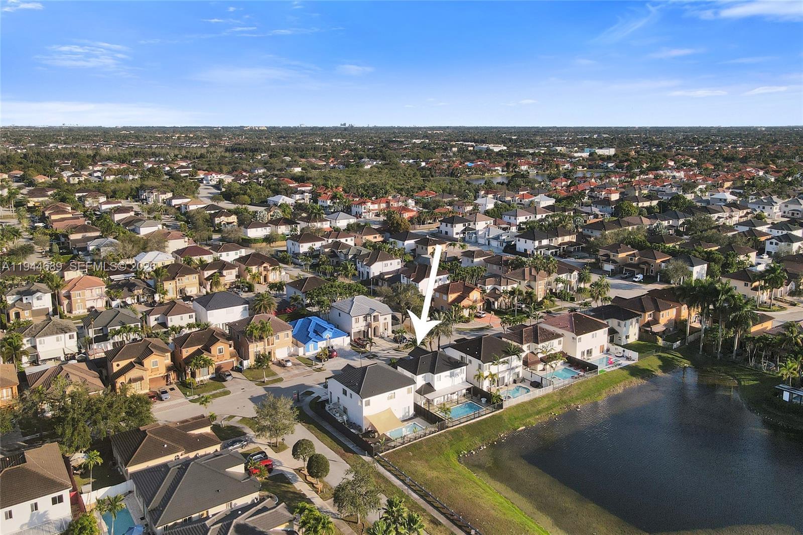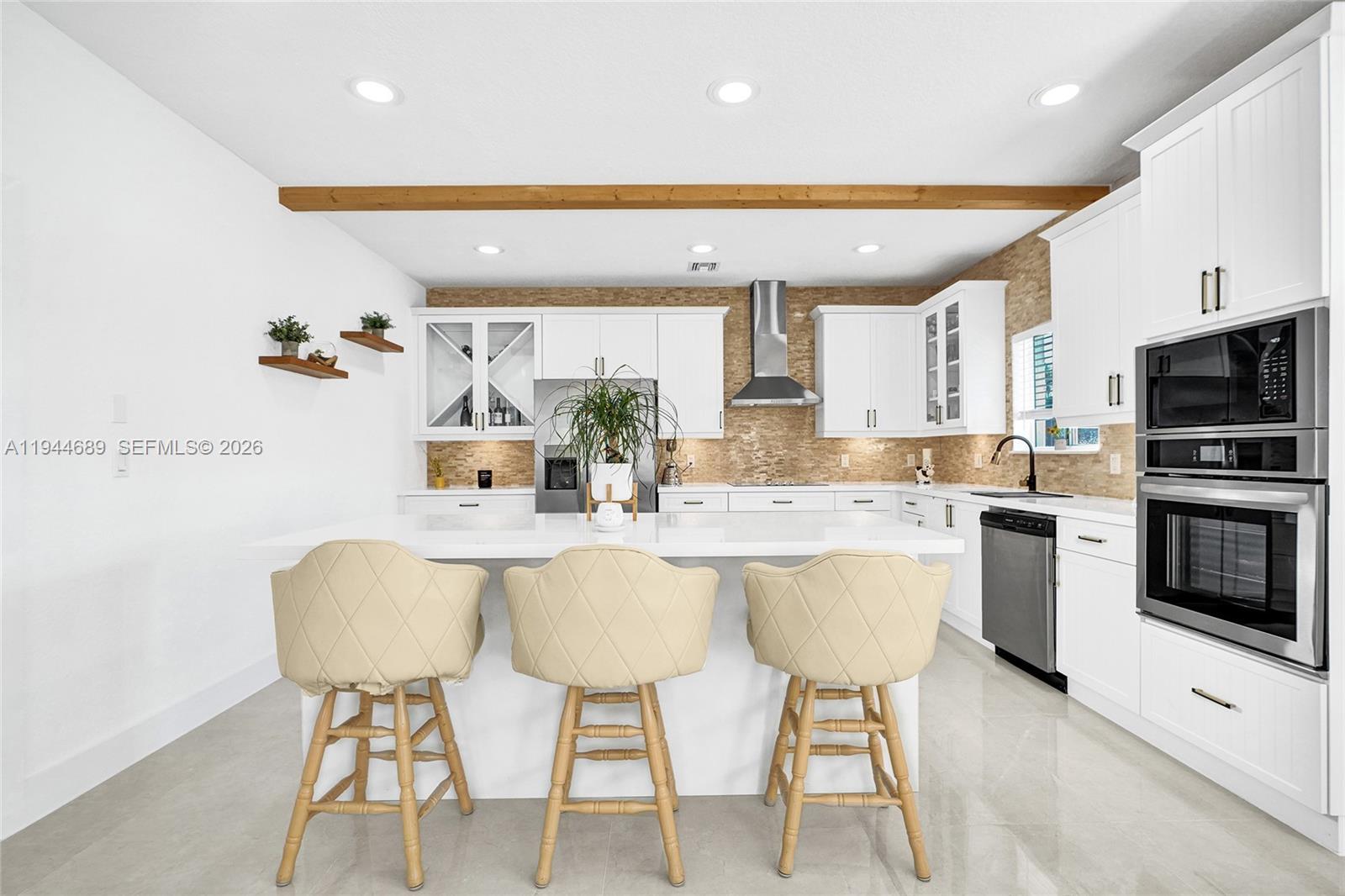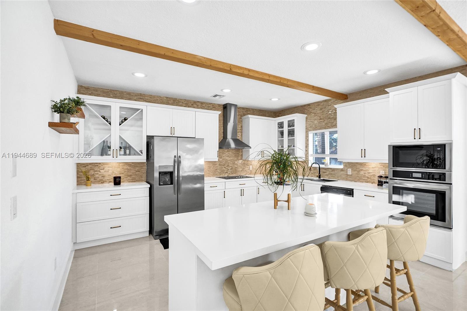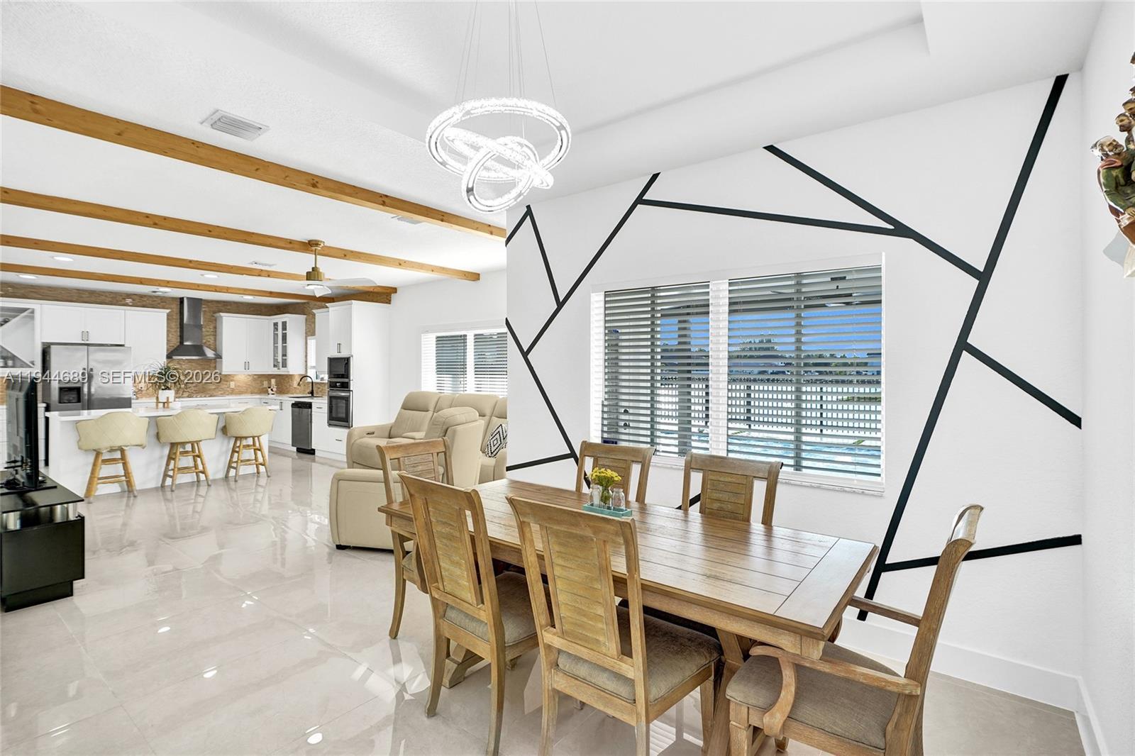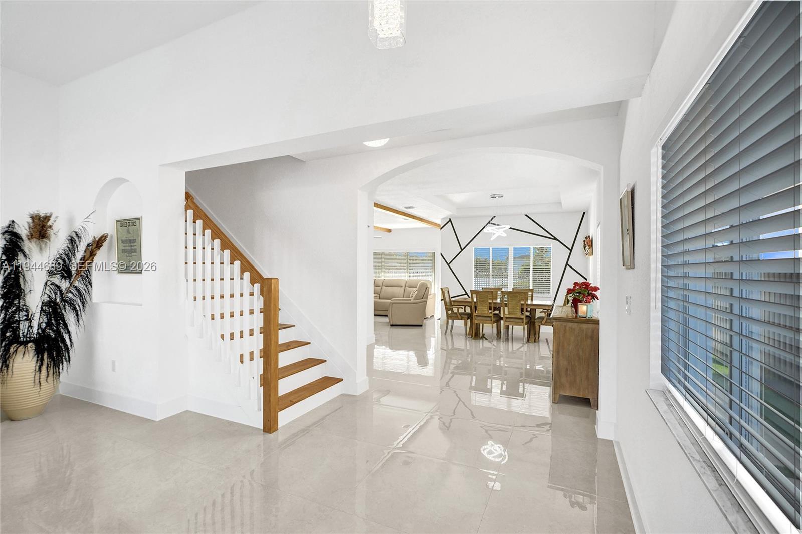 Beautifully updated 4-bedroom, 3-bath modern residence offering porcelain flooring, soaring ceilings, and an expansive open-concept kitchen with high-end finishes. Features include a two-car garage with EV charging, covered terrace, contemporary pool with LED lighting, and serene waterfront views. Move-in ready with outstanding curb appeal, located in a secure, non-HOA community. A truly exceptional opportunity.