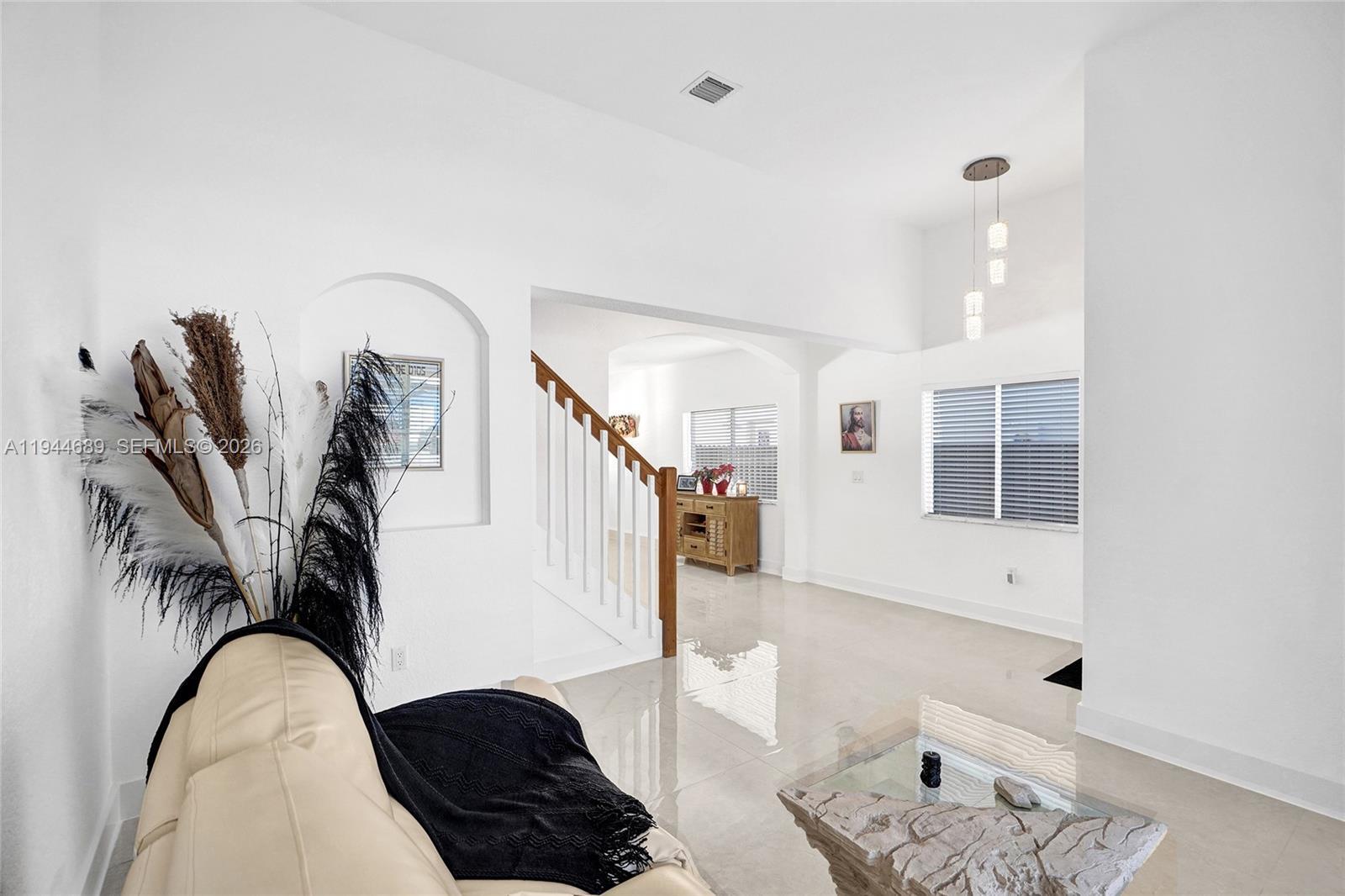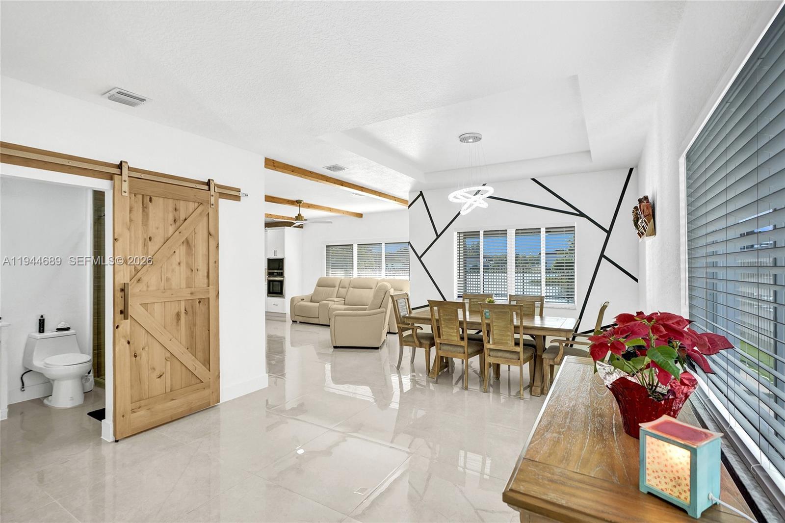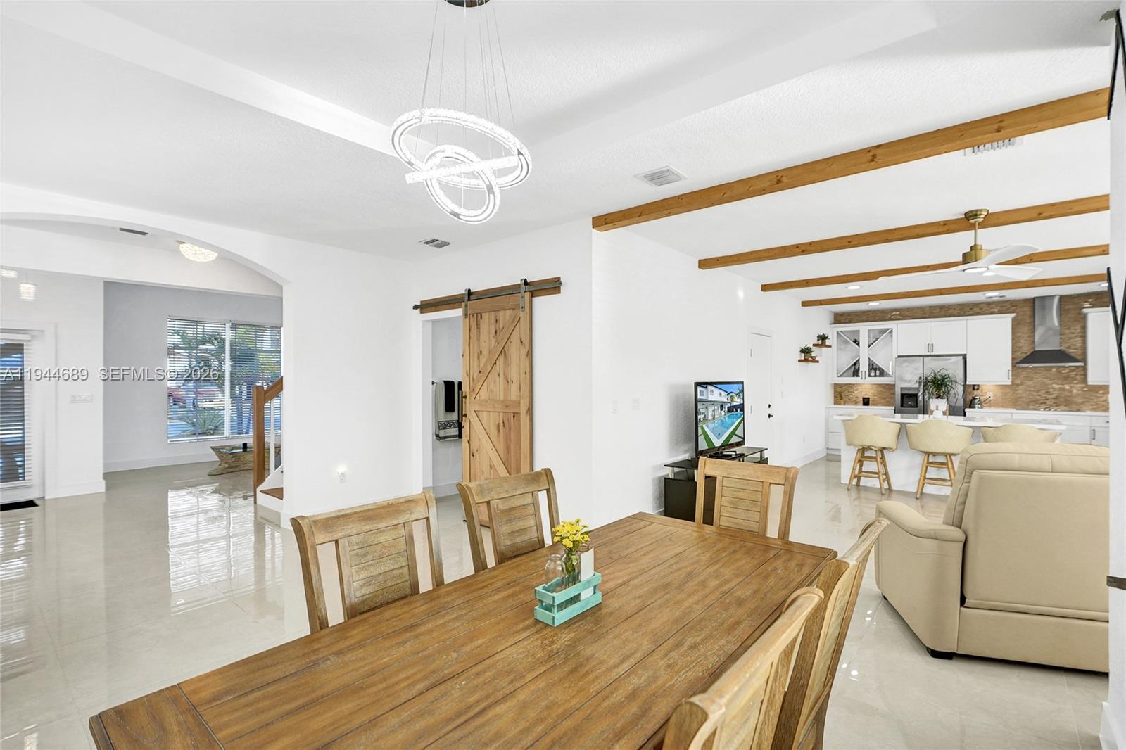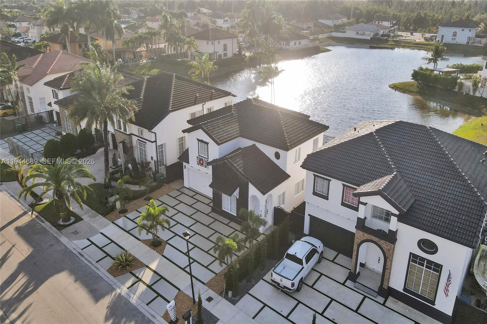 Beautifully updated 4-bedroom, 3-bath modern residence offering porcelain flooring, soaring ceilings, and an expansive open-concept kitchen with high-end finishes. Features include a two-car garage with EV charging, covered terrace, contemporary pool with LED lighting, and serene waterfront views. Move-in ready with outstanding curb appeal, located in a secure, non-HOA community. A truly exceptional opportunity.