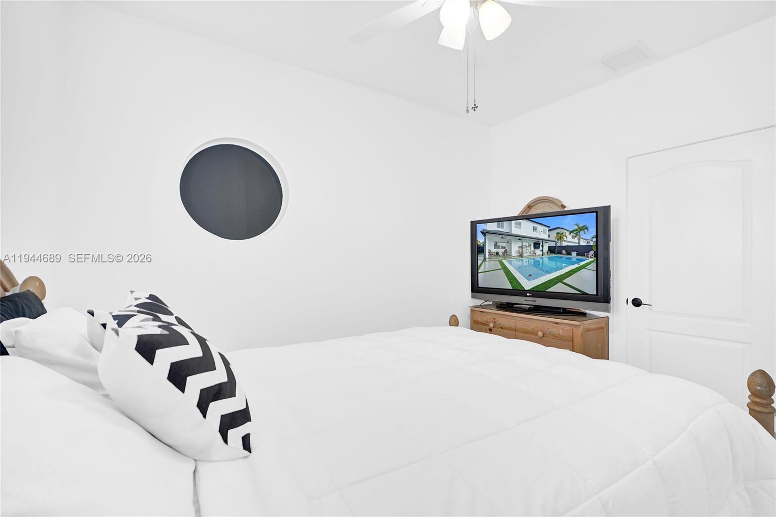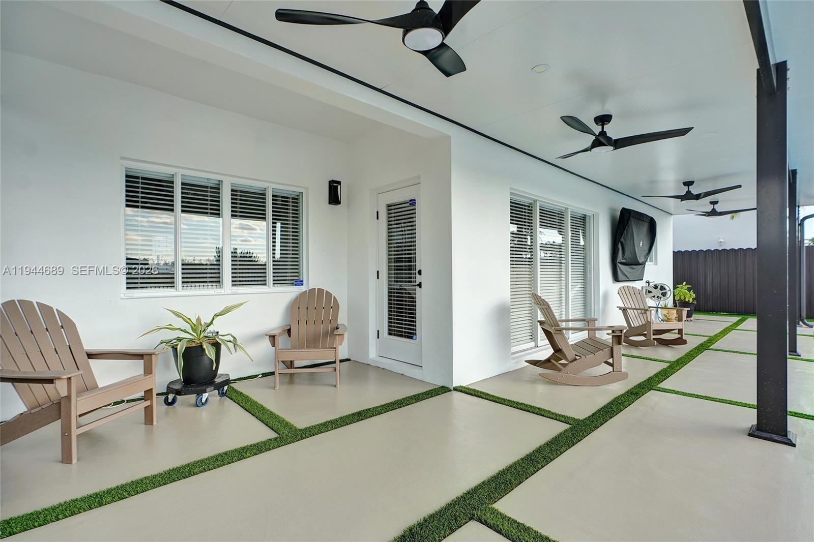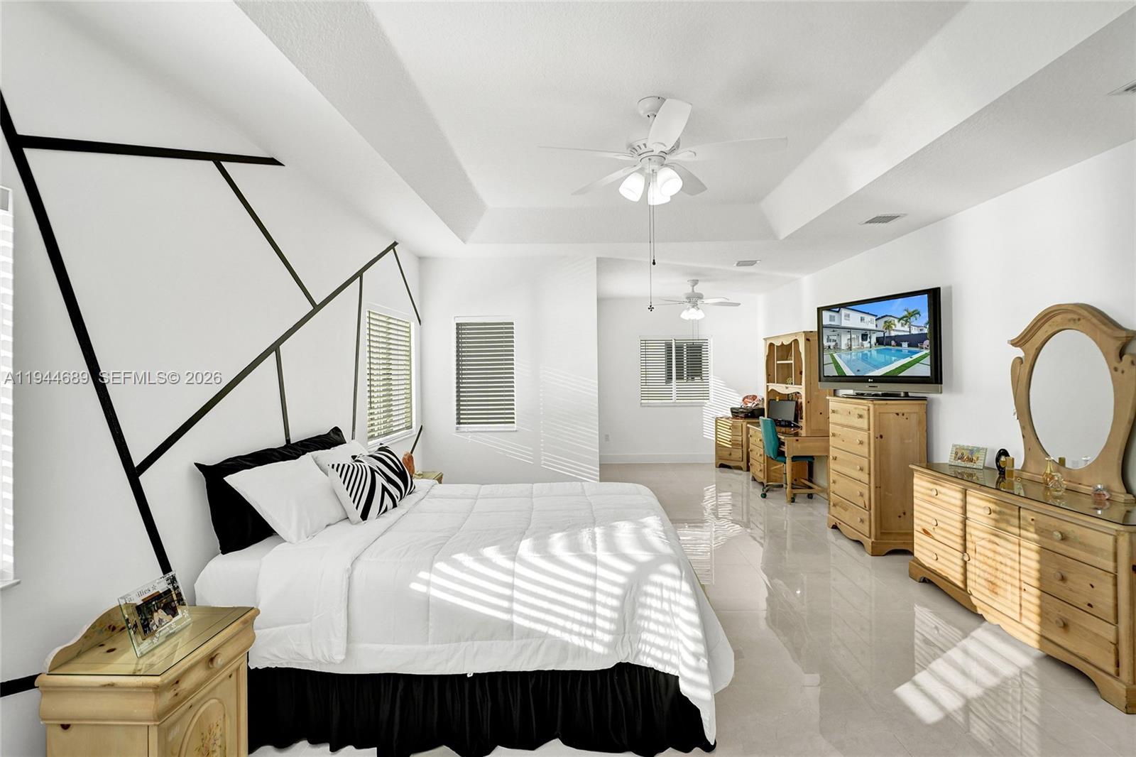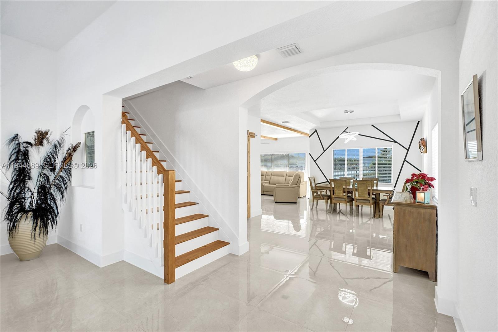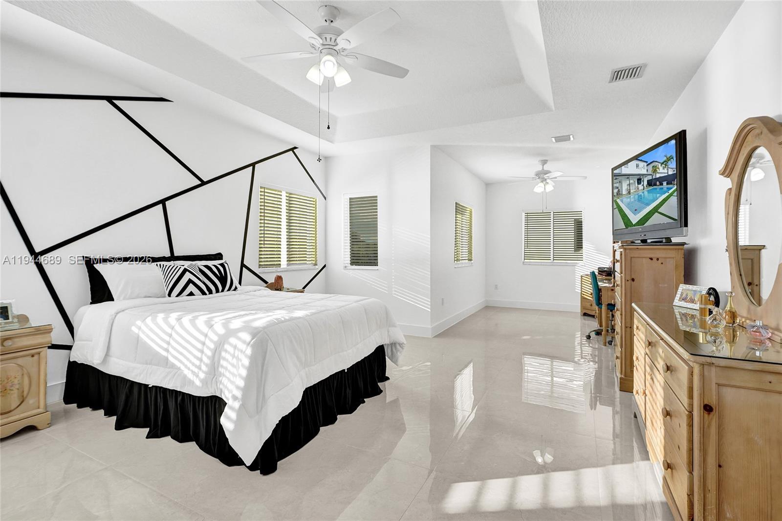 Beautifully updated 4-bedroom, 3-bath modern residence offering porcelain flooring, soaring ceilings, and an expansive open-concept kitchen with high-end finishes. Features include a two-car garage with EV charging, covered terrace, contemporary pool with LED lighting, and serene waterfront views. Move-in ready with outstanding curb appeal, located in a secure, non-HOA community. A truly exceptional opportunity.