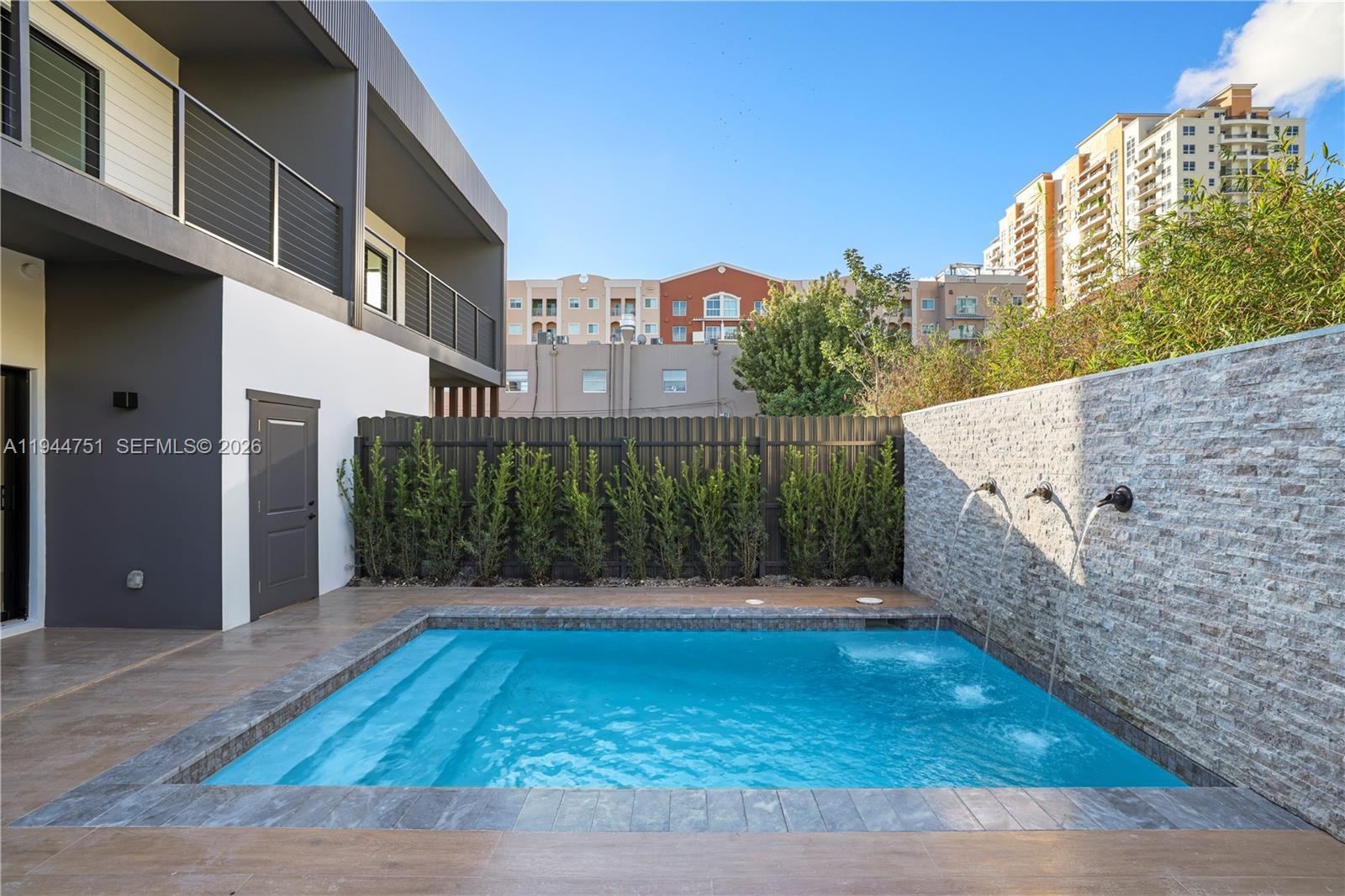 Luxurious Brand new-construction townhome, ideally located just steps from Coral Gables ,Coconut Grove & downtown Miami. This 4/4.5 residence with a loft offers 2,750SF of thoughtfully designed interior space, blending contemporary elegance with everyday comfort. The gourmet kitchen is a show piece, featuring premium appliances, custom European cabinetry, quartz countertops, and a floating waterfall island. Floor-to-ceiling impact-rated windows flood the home with natural light. Retreat to your private outdoor sanctuary with a heated pool & lush landscaping. A 1 car garage with a 23’ driveway offers space for additional parking. Additional features include an automated aluminum gate, EV charger, CCTV-ready smart home technology, and integrated security cameras.