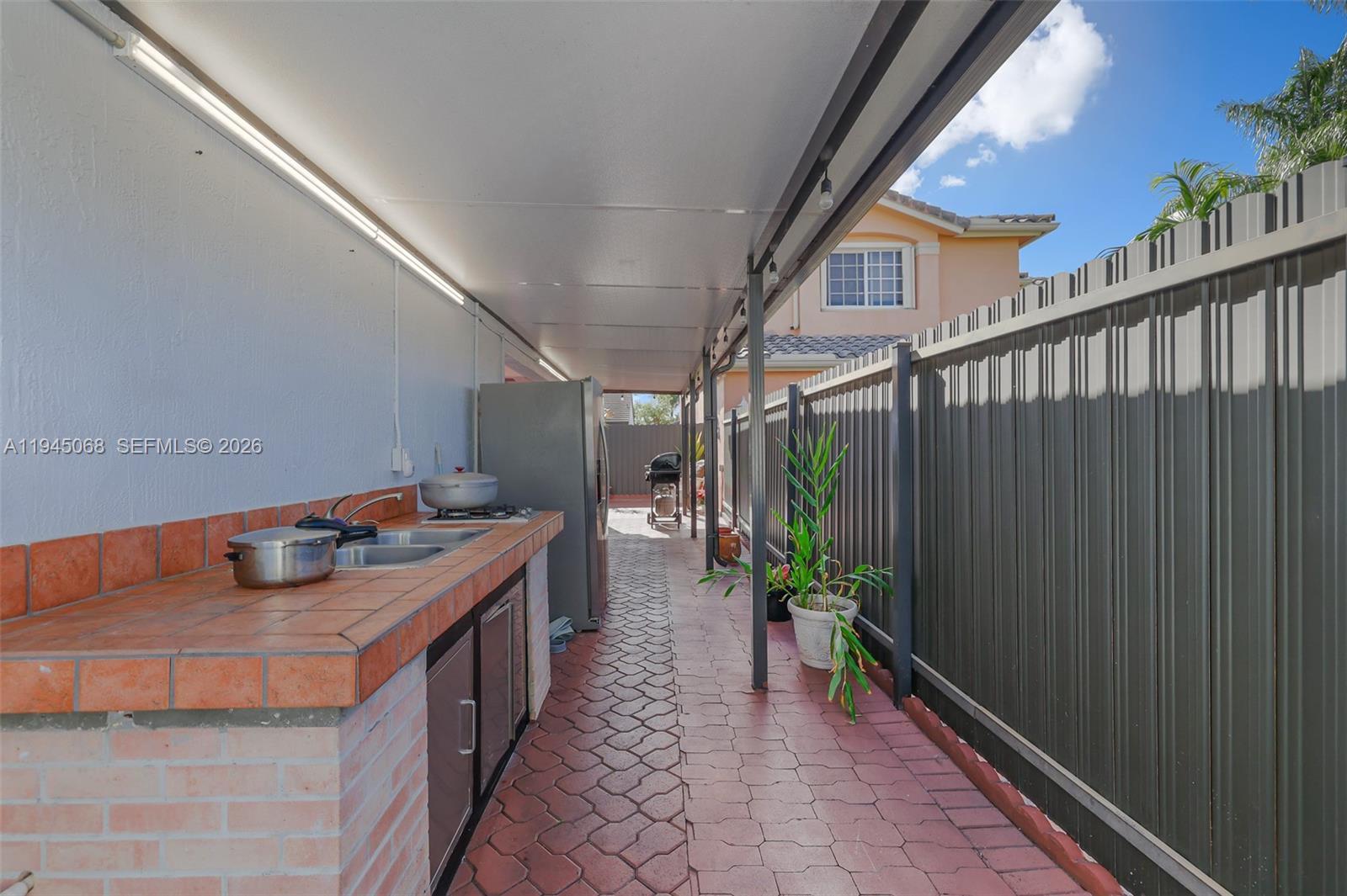 Fully Renovated Home in a Quiet, Convenient Neighborhood. This beautifully renovated 4-bedroom, 2-bathroom home offers modern style, comfort, and thoughtful design throughout. Featuring stunning floors, a sleek updated kitchen, and beautifully finished bathrooms, the home has been meticulously cared for and is truly move-in ready. The spacious primary suite is a standout, complete with a large walk-in wardrobe and direct access to the patio—creating a perfect private retreat. Ample storage throughout the home adds to its everyday functionality. Step outside to a paved patio designed for entertaining, featuring shades and a built-in summer kitchen ideal for outdoor cooking, barbecues, and gatherings with family and friends. Set in a lovely, quiet neighborhood, this home offers peace and privacy while remaining conveniently close to shopping, dining, and all essential amenities. A perfect blend of style, comfort, and location—this is a home not to be missed.