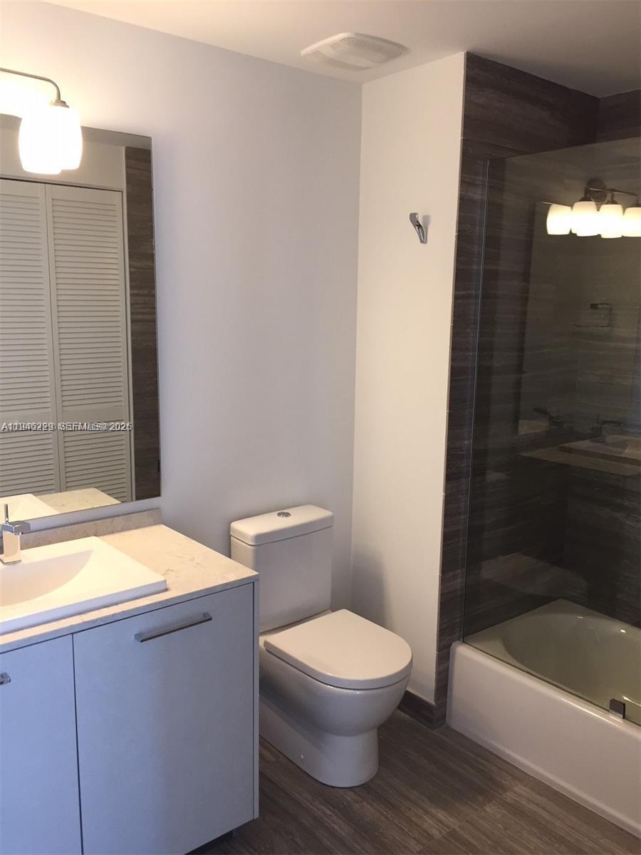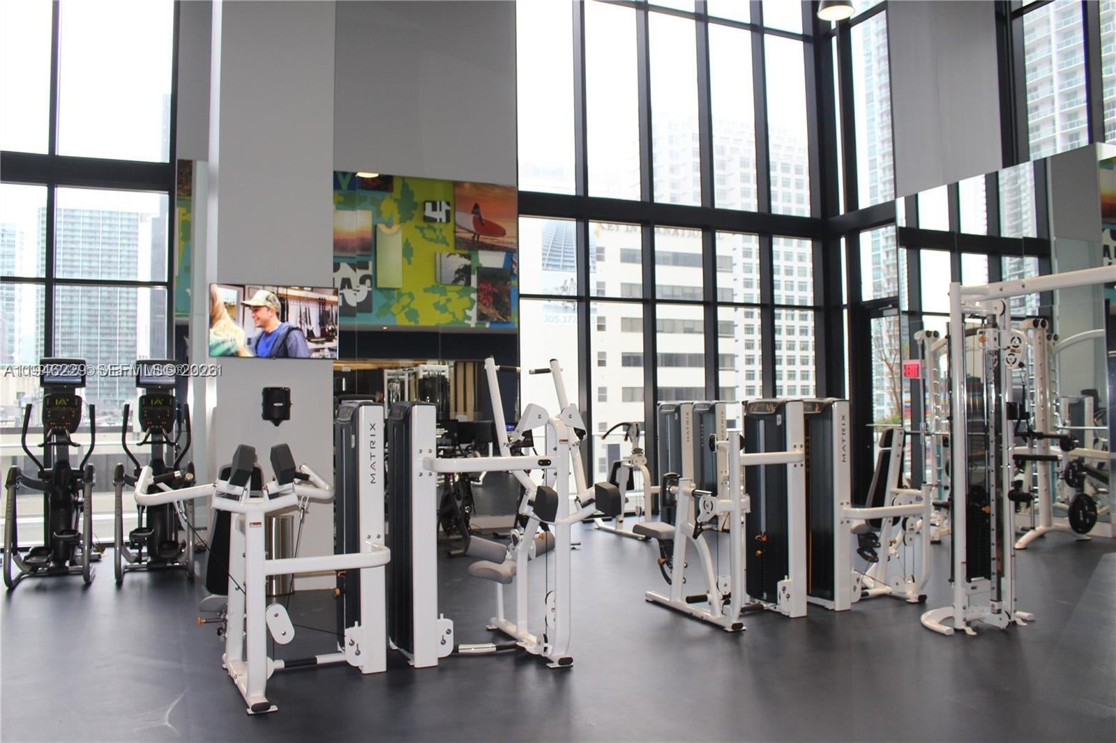 Spectacular 2-bedroom, 2-bath residence, completely upgraded and featuring porcelain tile flooring throughout, a glass-enclosed shower, custom-designed closets, elegant window treatments, and impressive 9-foot ceilings. The unit is equipped with top-of-the-line Smeg appliances and includes one assigned parking space. 1010 Brickell offers some of the finest amenities in the area, including a 50th-floor rooftop with a swimming pool, outdoor movie theater, and restaurant. Residents also enjoy a full-service spa with hot and cold Jacuzzis, massage and treatment rooms, sauna and steam room, as well as basketball and racquetball courts, a jogging track, indoor heated pool, state-of-the-art fitness center, party room with kitchen, open terrace with barbecue area, and an incredible kids’ room featuring bowling, a virtual golf simulator, ping-pong, and more. Ideal located near public transportation, Brickell City Centre, dining, shopping, and entertainment—this is luxury living at its best.