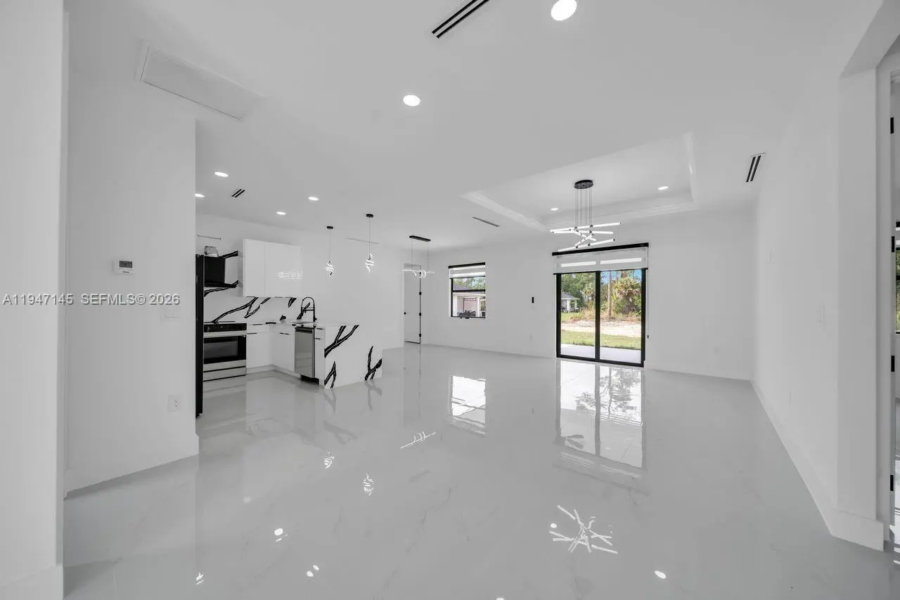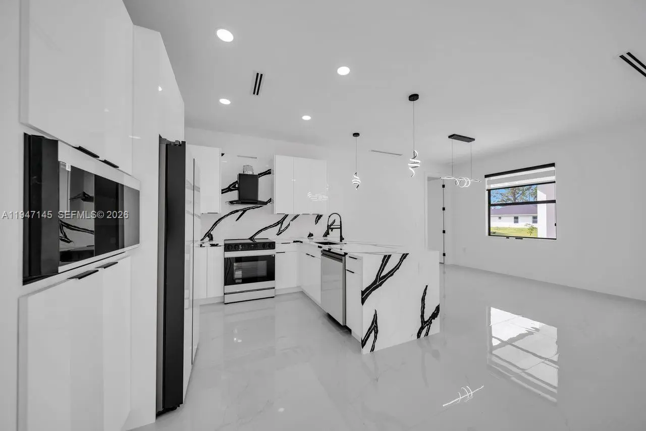 Welcome to an exceptional new construction residence in the heart of Lehigh Acres, where contemporary luxury meets thoughtful design. This impeccably crafted home presents an enticing blend of sophistication and practical living spaces, offering three bedrooms and two well-appointed bathrooms. Step through the elegant double-door entry into a home that exemplifies modern Florida living. The great room design creates an impressive sense of openness, seamlessly connecting living spaces and establishing an ideal environment for both entertaining and daily life. The heart of this home is its beautifully conceived kitchen, featuring a traditional eat-in design enhanced by a generous island that doubles as a casual dining space. Culinary enthusiasts will appreciate the complete suite of new stainless steel appliances, including a refrigerator, dishwasher, microwave, and range. The kitchen's sophisticated aesthetic is elevated by premium quartz countertops, which extend into the bathrooms, maintaining a cohesive design throughout. The primary bedroom suite stands as a private retreat, boasting a spacious walk-in closet and an elegant bathroom with dual sinks. Two additional bedrooms offer comfortable accommodations for family members or guests, while the... REFER TO SUPPLEMENTAL REMARKS FOR COMPLETE DESCRIPTION!!!