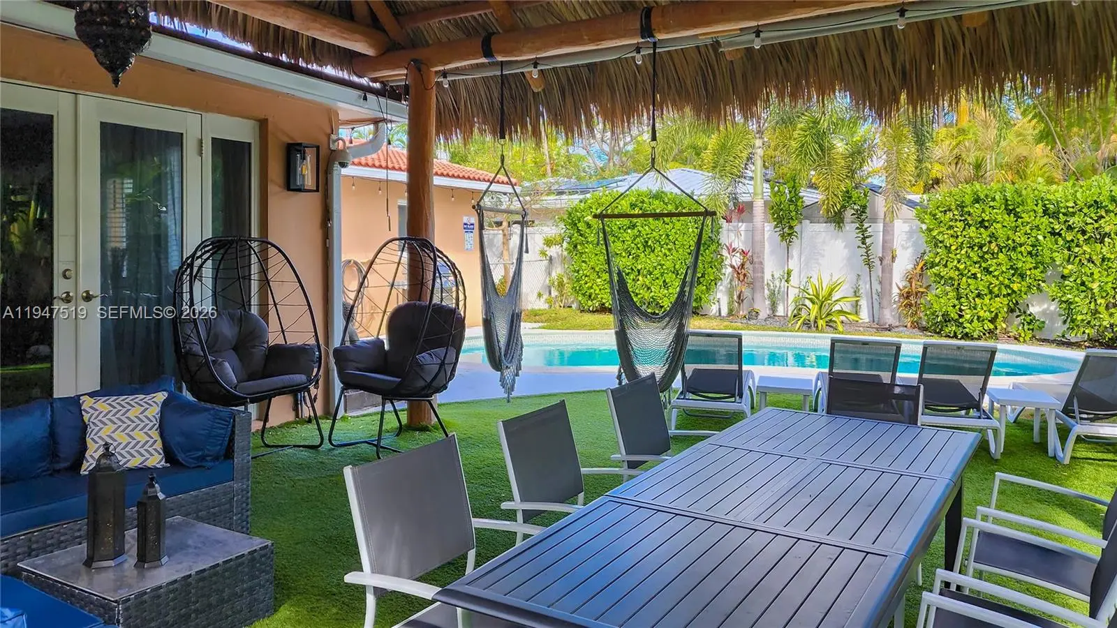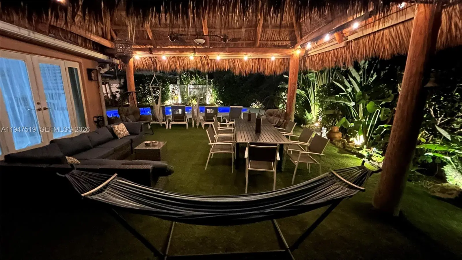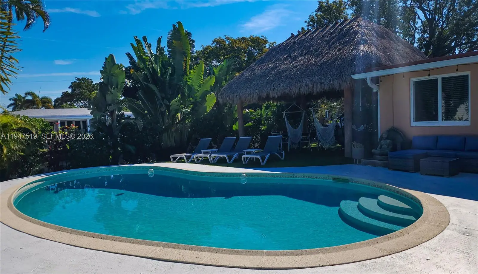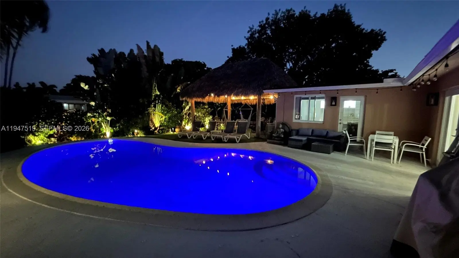 Experience resort-style living year-round in this exceptional canal-front home with impeccable landscaping. Thoughtfully updated and professionally designed, this residence features newer saltwater concrete heated pool, private floating dock, and a charming very private expansive backyard with oversized Tiki—perfect for relaxing or entertaining. Enjoy peace of mind with a newer roof, hurricane-impact windows and doors installed in 2022, and a new AC system. EV charger installed and the whole house is pre-wired for the generator. Meticulously maintained house, freshly painted interiors complement the home’s modern, coastal aesthetic. Ideally located in a highly desirable area, close to shopping, dining, entertainment, and major conveniences. This is waterfront living at its finest—where comfort, style, and location come together seamlessly.