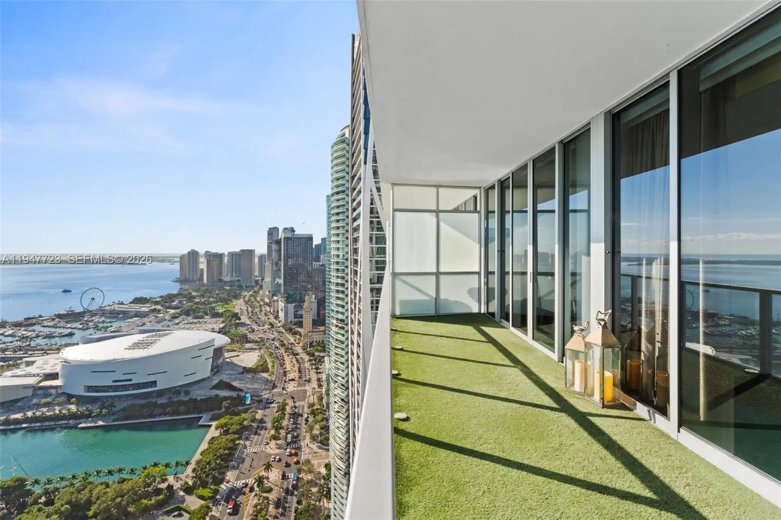 Experience high-rise Miami living at its finest in this vibrant, move-in-ready residence perched above the city with breathtaking Bay and skyline views, a spacious living room that opens to a private terrace, two full bedrooms with custom closets, and sleek modern bathrooms. The gourmet kitchen features premium appliances, washer/dryer, and a clean contemporary design that elevates everyday living. You're steps from Brickell, Kaseya Center, Brightline, museums, waterfront parks, shops, and endless dining options. Marquis takes luxury to another level with a two-story spa, sunrise and sunset pools, a state-of-the-art fitness center, full valet and concierge services, 24/7 security, co-working spaces, a mini market, and exclusive beach access—delivering a true resort-style lifestyle.