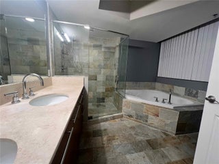 Desirable 3 Bed + 3 Bath corner unit with spacious kitchen, w/cabinets, stainless appliances, granite counter tops, windows shades, ceramic tile floor throughout unit and very spacious master bedroom, 2 assigned parking spaces, high rise property and the best resort style, covered parking, full amenities, jacuzzi, child play area, bbq/picnic area, pool room, putting green, modern fitness center with state-of-the-art cardiovascular & strength training equipments, business center with computer and conference room, spa/hot tub.