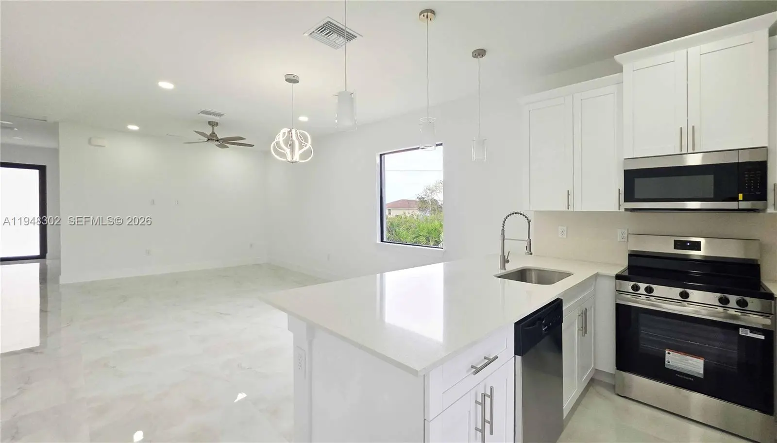 Discover this stunning residence in Lehigh Acres. This beautiful home is built with high-quality materials and features a modern, elegant, and spacious design, enhanced by high ceilings that amplify the sense of luxury. It boasts 3 bedrooms, 2 bathrooms, and over 1,500 square feet of total living space. The property showcases durability and refined taste in every detail, from the excellent materials used in the flooring, cabinetry, countertops, and lighting to the stainless steel appliances, all in a contemporary style. Large impact-resistant windows and doors allow natural light to flood the interior, creating warm and inviting spaces. No HOA, no fees.