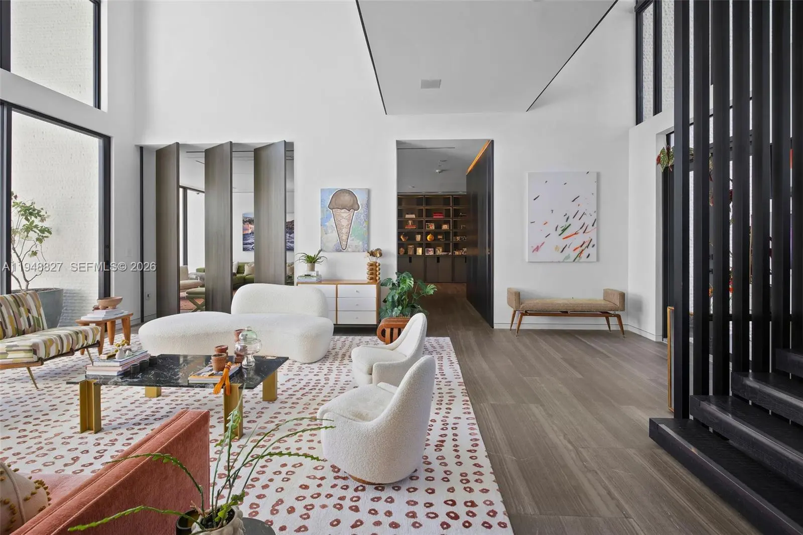 Maison Paloma - This Choeff Levy-designed custom-built waterfront Cocoplum estate blends sculptural architecture with refined contemporary finishes, including dual entry waterfalls, Venetian plaster interiors, limestone & Listone Giordano wood flooring, & expansive glass overlooking the canal. The Boffi-designed kitchen features Sub-Zero, Gaggenau & Miele appliances with porcelain slab surfaces & integrated cabinetry, while the family room includes LED-lit display shelving & a wet bar with Sub-Zero refrigeration & ice maker. A rare finished basement offers additional usable space not included in the living SF, with areas for 4 defined areas arts/crafts, home theatre, den & fitness. The second level includes a private primary suite with balcony, large dual closets & spa bath, with additional ensuite bedrooms & upstairs flex lounge, all connected by an elevator. Outdoor living includes a heated edgeless pool/spa, privacy landscaping & fully equipped summer kitchen, with approx. 100 ft frontage, newer seawall cap & utilities-ready dock. Additional features include Control4 automation, Sonos audio, 14 security cameras, generator & a gated carport in one of Miami's most sought-after gated residential enclaves.
