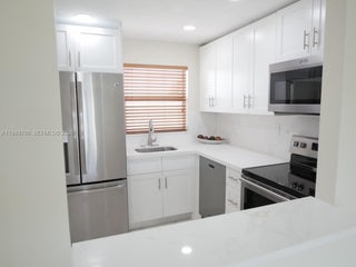This beautifully redone apartment in Phase 3 at Sunrise Lakes has all new kitchen cabinetry, lovely quartz countertops, new SS appliances and features a large open pass through to the living room. Ceilings have all been smoothed and recessed lighting added. Main areas are tiled and bedroom has brand new carpet. Bathroom features stunning large slab format porcelain tile in shower and great new vanity with brushed gold hardware. Amazing storage with large walk in closet and additional wall closet in bedroom, another closet in hallway and built in storage in entry that holds a ton of stuff. Sunrise Lakes gives you FREE golf, tennis, theatre and much more. This Phase also includes service contract for appliances included in your low HOA fee. This great priced apartment is truly a great deal!