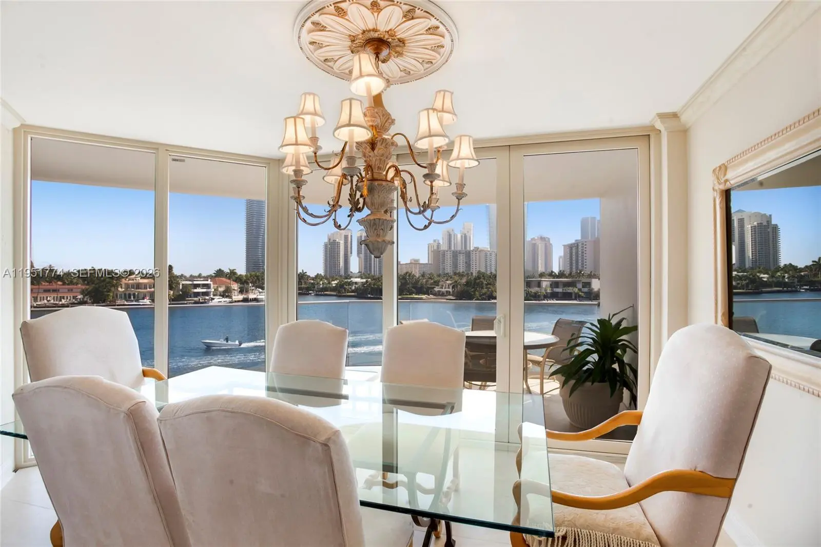 WATER WATER EVERYWHERE! SPECTACULAR UNOBSTRUCTED VIEWS DIRECTLY ON THE INTRACOASTAL! 1904 Sq. Ft. with a huge oversized wrap around terrace that spans the entire unit! Only one of its kind! Upgraded with porcelain floors and impact windows. Spacious 2Bd. 2 Bth + Den can be an office or a 3rd bedroom. Large walk-in closet. Upgraded kitchen and bathrooms. Amenities include heated pool with pool service for year round relaxation, jacuzzi, on site restaurant, children's playroom, billiard room, theater room, exercise room, party rooms and more. Gym and Free fitness classes including Yoga, Pool Aerobics and Zumba classes. 24 hr. security and valet for comfort and peace of mind.. Close to great shopping, fine dining, beautiful beaches, both Int'l airports, and across from Turnberry PGA world class golf course. It doesn't get much better than this. Don't miss this opportunity to own a piece of paradise in your own backyard!