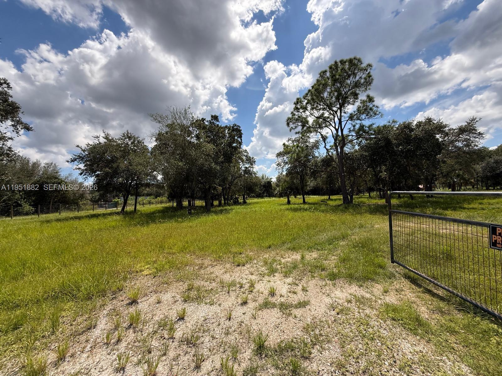 Lot terrain clean,flat, and fully fanced with sturdy livestock fencing. Includes a dedicated driveway with a vacant tube and onsite parking pad. Shade trees have been removed, preparing the property for future development.
