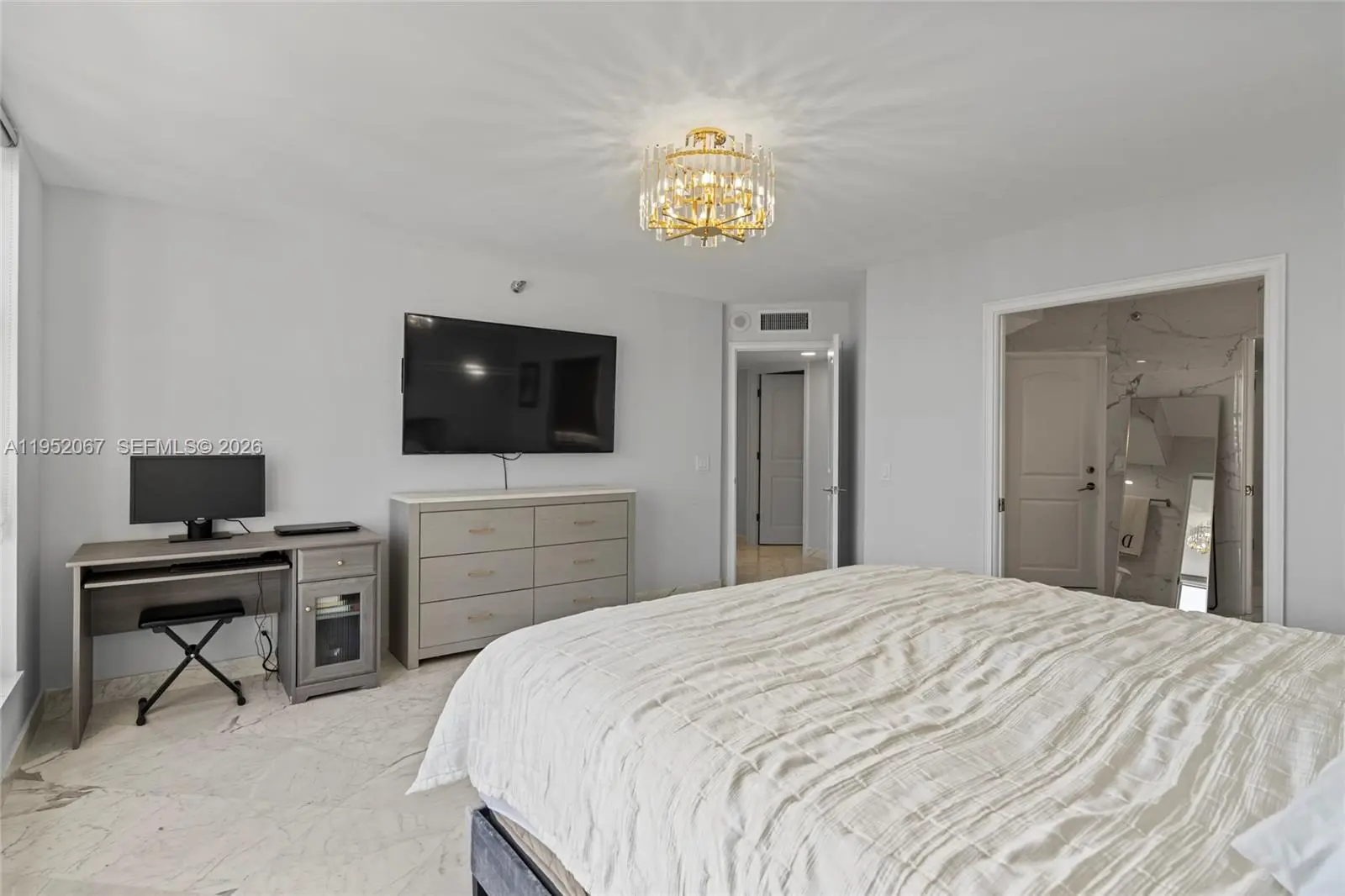 Experience elevated living from this 29th-floor corner residence offering breathtaking panoramic views of the Intracoastal, Ocean, and city skyline. This 3-bedroom, 3-bathroom condo with 1,714 square feet combines space, light, and resort-style living in one of Aventura’s most desirable waterfront communities. Designed for both everyday comfort and entertaining, the home features modern marble floors throughout, an open-concept kitchen featuring a statement counter, and expansive living areas surrounded by floor-to-ceiling windows. The seamless layout integrates indoor living with spectacular water views, creating an ideal setting for hosting or unwinding above the city. The residence includes two primary-style bedrooms with en-suite bathrooms, offering privacy and flexibility. All bathrooms have been completely updated including showers with elegant glass enclosures. Custom-designed closets enhance both function and style. Additional highlights include hurricane shutters and in-unit laundry room with utility sink. Residents enjoy a full resort-style amenity package, including a state-of-the-art fitness center, pool, tennis and pickleball courts, lush tropical gardens, on-site restaurant and café, optional marina access, fenced dog park, and electric vehicle charging stations. Perfectly located just minutes from Aventura Mall, world-class dining, pristine beaches, and houses of worship, this waterfront condo offers the ideal balance of luxury, lifestyle, and location.