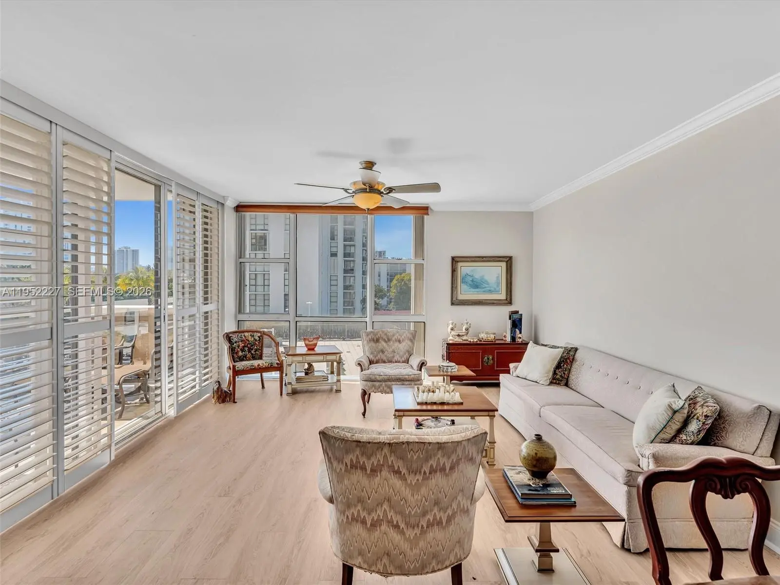Bright, spacious, and quiet corner residence in the heart of Aventura at El Dorado Tower. This well-proportioned 2-bedroom, 2-bath home offers 1,142 sq. ft. of comfortable living space, featuring a private balcony and plantation shutters throughout. The unit includes a deeded covered parking spot, a rare feature in the building. The well-maintained building has recently undergone extensive upgrades, with the Olympic-size pool renovation in its final stages and soon to be enjoyed. The property offers resort-style amenities including a jacuzzi, sauna, BBQ area, billiards room, library, clubhouse, 24-hour security, and a unique 3.5-mile exercise trail right at your doorstep. Ideally located next to the Turnberry Golf Course and Aventura Circle, this home provides convenience and a relaxed, outdoor lifestyle just minutes from Aventura Mall, Waterways Marina, Aventura Arts Center, beaches, restaurants, and top-rated schools. Perfect for full-time living or a seasonal retreat. Schedule your private showing today!