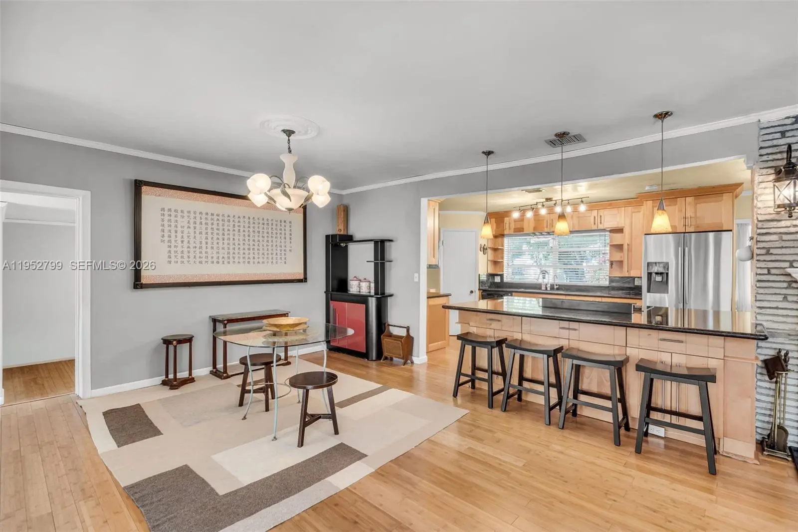 Welcome to 1230 Bird Road, a bright and inviting residence designed for effortless Miami living. This open concept home offers a seamless flow between the living, dining, and kitchen areas, highlighted by bamboo wood floors and an abundance of natural light, ideal for everyday living and entertaining. Oversized lot with pool complete with spa and garden area great for entertaining. The modern kitchen features wood shaker cabinetry and stainless steel appliances, creating a clean and functional space that connects beautifully to the main living areas. The home offers three large bedrooms plus a versatile den, complemented by beautifully remodeled bathrooms. Step outside to your private backyard retreat with a pool, ideal for relaxing weekends and hosting friends year round. Thoughtfully laid out and easy to live in, this home blends comfort, functionality, and indoor outdoor living in a central Miami location.