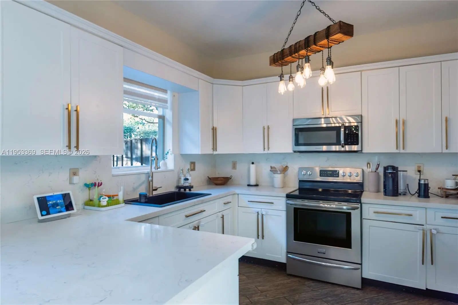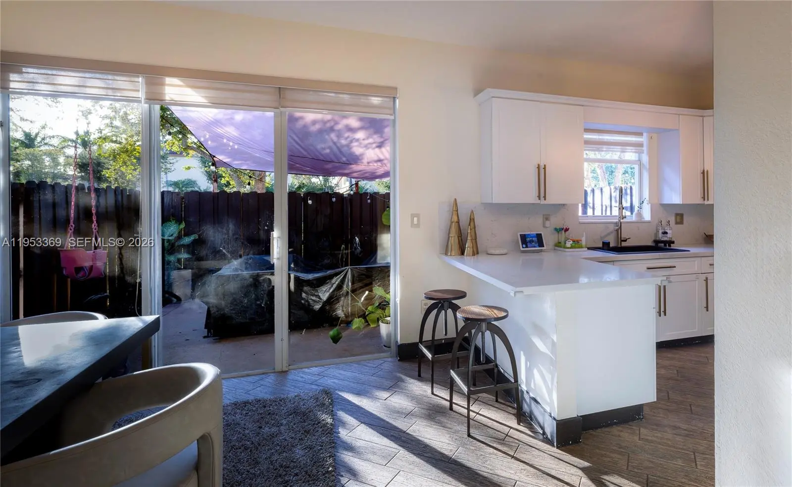 Beautifully renovated 3 bedroom, 2.5 bath corner unit showcasing modern, designer finishes throughout. This move-in-ready home features brand-new flooring, an upgraded kitchen with stainless steel appliances, and unique contemporary lighting that elevates every space. All bathrooms have been fully renovated with elegant, modern tilework. The spacious primary suite is a true retreat, offering two walk-in closets, including an oversized glam boutique-style closet complete with a vanity and jewelry drawers—plus a second generously sized walk-in closet. Additional highlights include new HVAC installed in 2024, two parking spaces directly in front (fits up to three cars), and a converted garage currently used as a playroom, easily adaptable as an office, flex space, or converted back to a garage. Washer and dryer conveniently on second floor between all 3 rooms. Plenty of storage space and easily accessible attic. Enjoy a private paved backyard, perfect for relaxing or entertaining. Located in a quiet, safe, family-oriented neighborhood with a prime Kendall location close to shopping, dining, and major conveniences. Beautiful, unique, modern, classy, and truly one of a kind—don’t miss this opportunity!