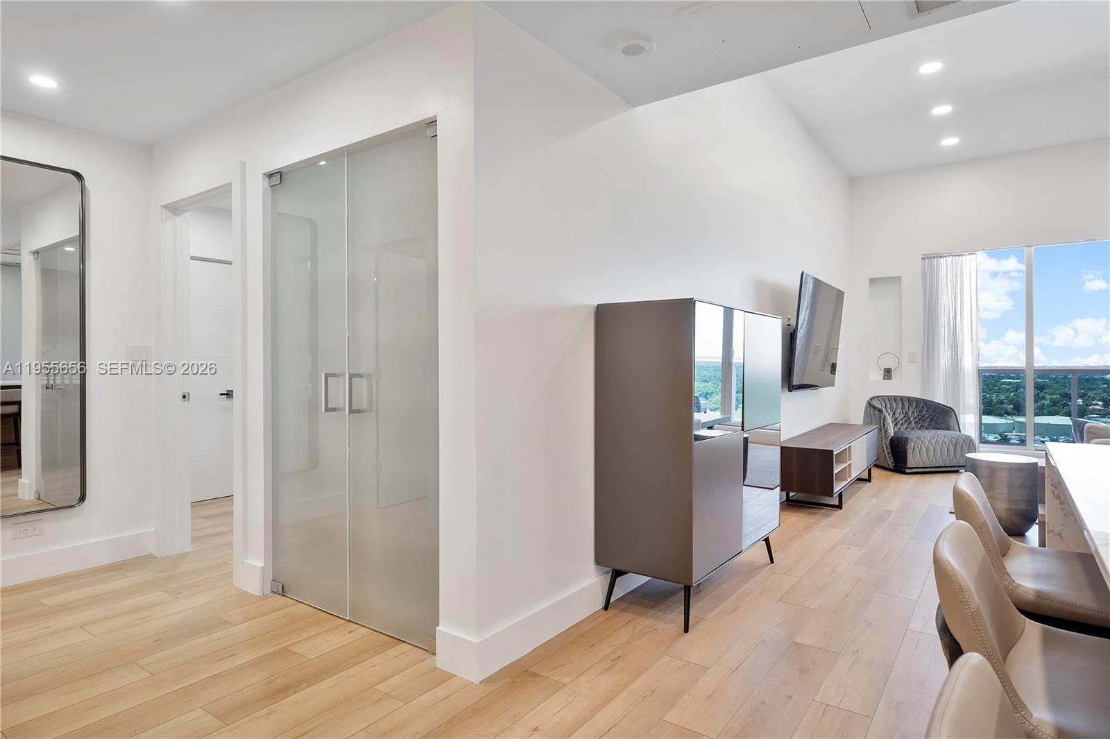Complete renovation completed in 2021. 12ft Ceiling highest at Roney. Meticulously designed 1 bedroom with customized kitchen, Miele Appliances, built ins, open kitchen, spa like bathrooms. Large terrace with unobstructed West, view. Includes Basic cable, wifi and water. Roney residents have access to all the 1 Hotel Amenities, including 3 ocean front pools, hot tub, beach services. On-site restaurants include Habitat, STK, Plnthouse organic cafe, Watr at the rooftop and more! Home to Soul Cycle, Anatomy Gym, high end spa and retail fashion boutiques. Valet and full-time security. 30 day rental allowed.