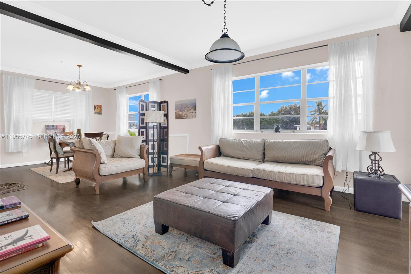 Spacious, well-maintained second-floor corner condo located on Miami Beach. This renovated unit offers 2 bedrooms and 2 bathrooms, a large living and dining area with high ceilings throughout, an updated full kitchen with stainless steel appliances including a gas stove and a microwave/convection oven, a dedicated laundry room, and a separate den/office which could also be used as a bedroom. Property has wood and tile floors throughout. Don't miss this extremely rare opportunity to own this hidden gem with breathtaking water views from your private balcony.