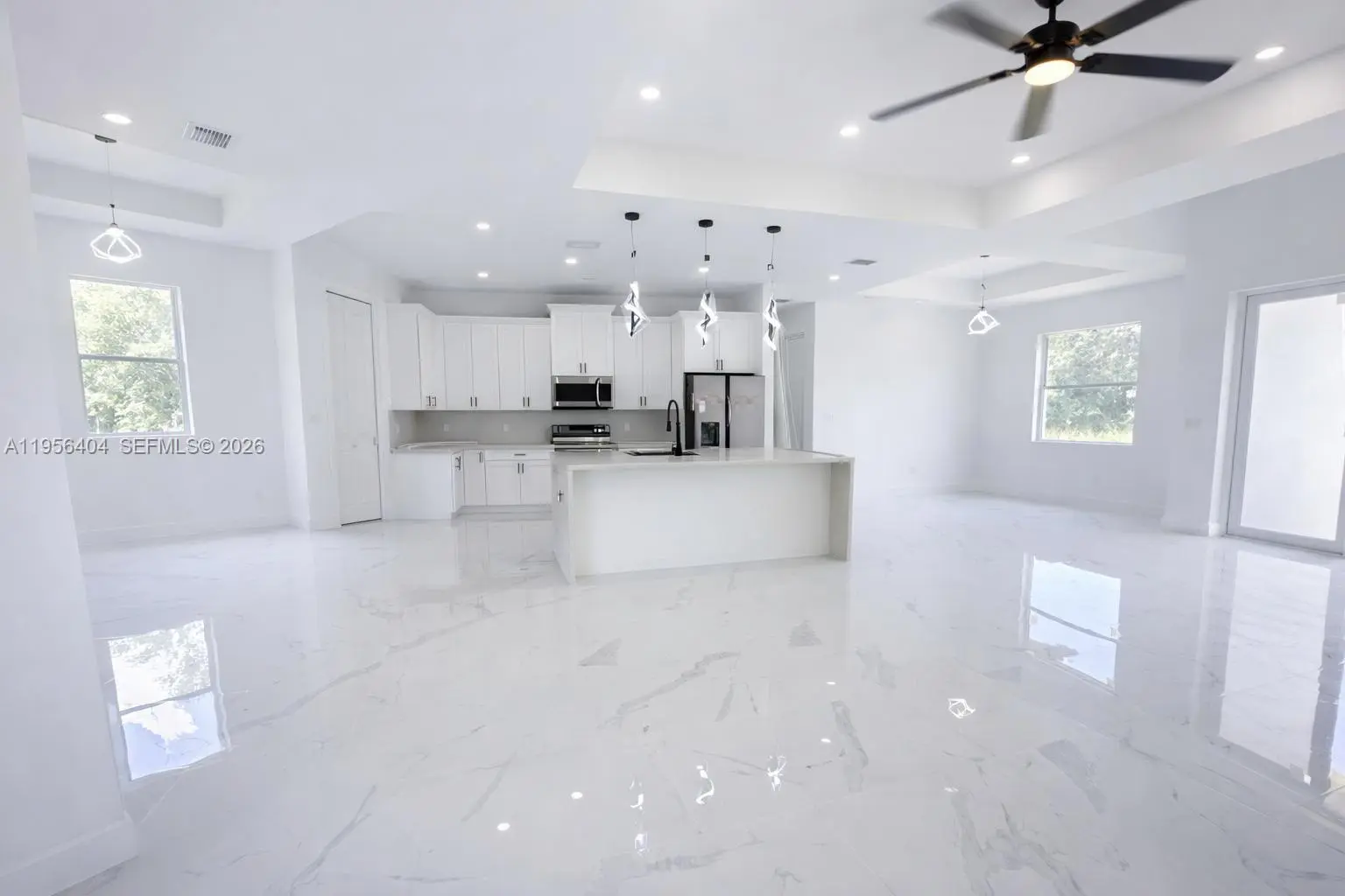 Step into contemporary living with this newly constructed 4-bedroom, 3-bathroom single-family home, completed in 2025 and situated on a generous corner lot in one of Lehigh Acres’ most sought-after neighborhoods. Spanning 2,021 sq. ft. on a 0.25-acre lot, this residence blends modern design with everyday comfort. Features include high ceilings, stylish tile floors, luxurious bathrooms, quartz countertops, and stainless-steel appliances. The open floor plan seamlessly connects to the outdoor area, perfect for hosting barbecues or adding a pool. Ready for immediate move-in and built for today’s lifestyle, this home offers a remarkable opportunity you won’t want to miss!
