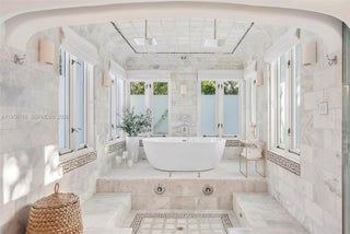 This iconic Mykonos-inspired masterpiece, celebrated in prestigious design magazines, redefines luxurious island living. Situated on exclusive guard-gated Hibiscus island, the property features 7 bedrooms and 7.5 bathrooms, with detached guest suites offering ultimate privacy. Unique features include steps that descend to the ocean, over-the-water dock house, a watch tower and multiple rooftop terraces with panoramic views. Enjoy the two-level pool with built-in lounge beds and 150 feet of pristine water frontage with south-facing sunset views. The 24/7 guard-gated neighborhood features a playground, basketball & tennis courts. Available May 1, 2026. 6 months + 1 day minimum rental.