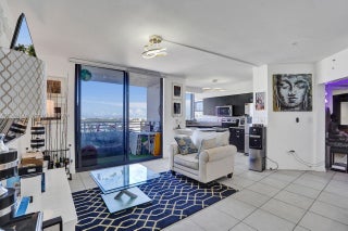 This condominium offers approximately 1,084 square feet of living space with two bedrooms and two bathrooms. The spacious layout creates a welcoming ambiance, enhanced by the ample natural light that floods the home through the expansive windows. The panoramic views from the home are truly breathtaking, showcasing the stunning waterfront landscape and the captivating city skyline. The open floor plan seamlessly integrates the living areas, allowing for a fluid and functional flow. The spacious kitchen boasts modern appliances and ample counter space, providing the ideal setting for culinary endeavors. The expansive balcony offers a private outdoor oasis, perfect for enjoying the coastal location and the serene waterfront views. The modern architecture of the building complements the vibrant neighborhood, offering a unique blend of contemporary style and coastal charm. The full-service building amenities include a sparkling outdoor pool, a barbecue area, and lush, tropical landscaping, providing endless opportunities for relaxation and entertainment. The split bedroom floorplan ensures privacy and comfort, while the abundant natural light throughout the home creates a warm and inviting atmosphere. Just steps from Lincoln Road and Sunset Harbour, the central South Beach location puts residents in close proximity to the bay, offering easy access to the waterfront and the city's vibrant cultural offerings.