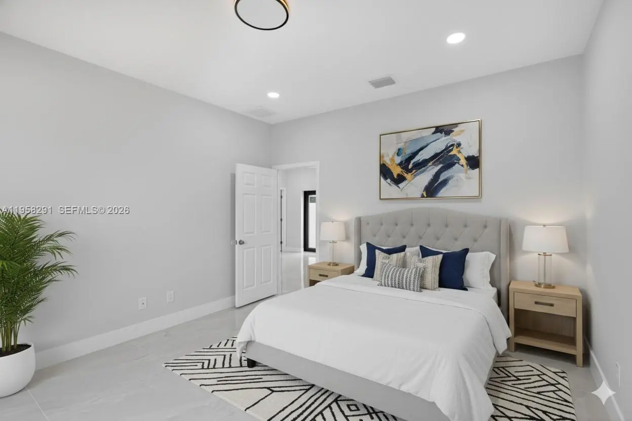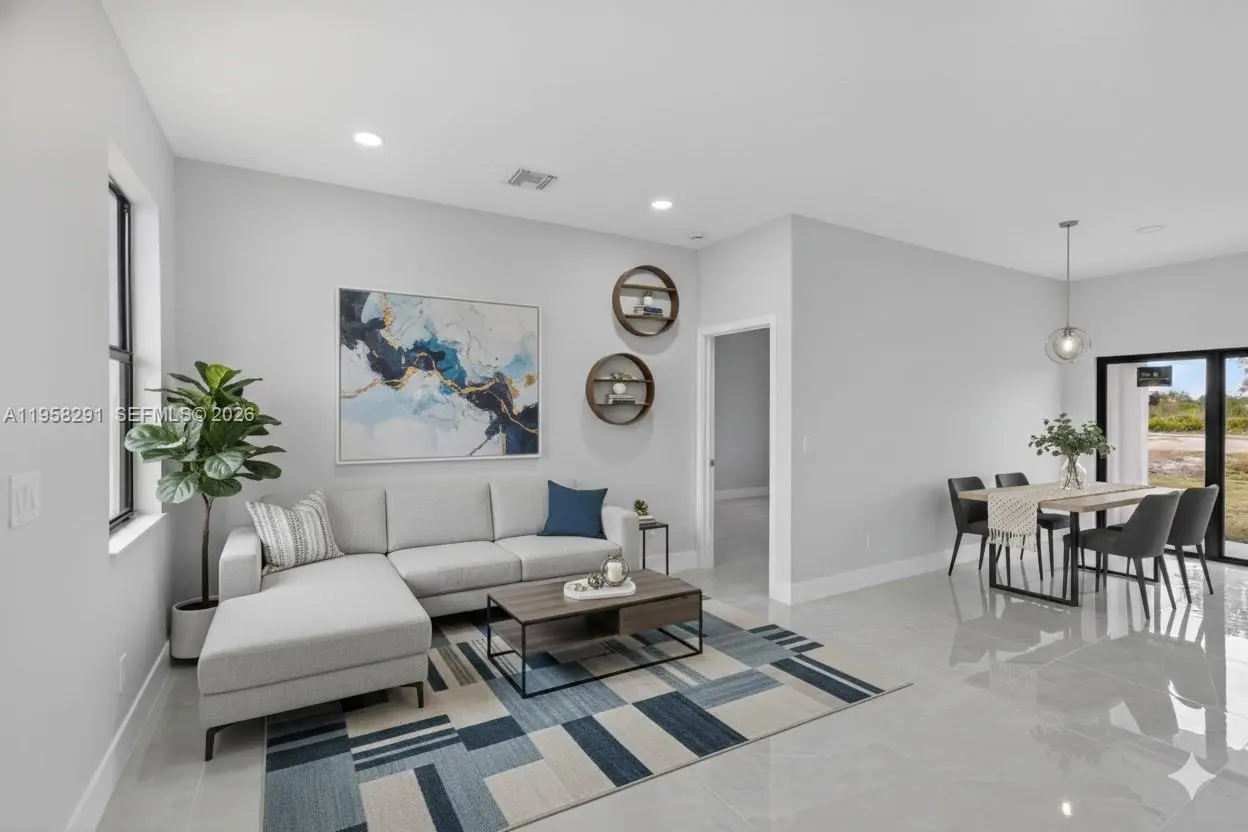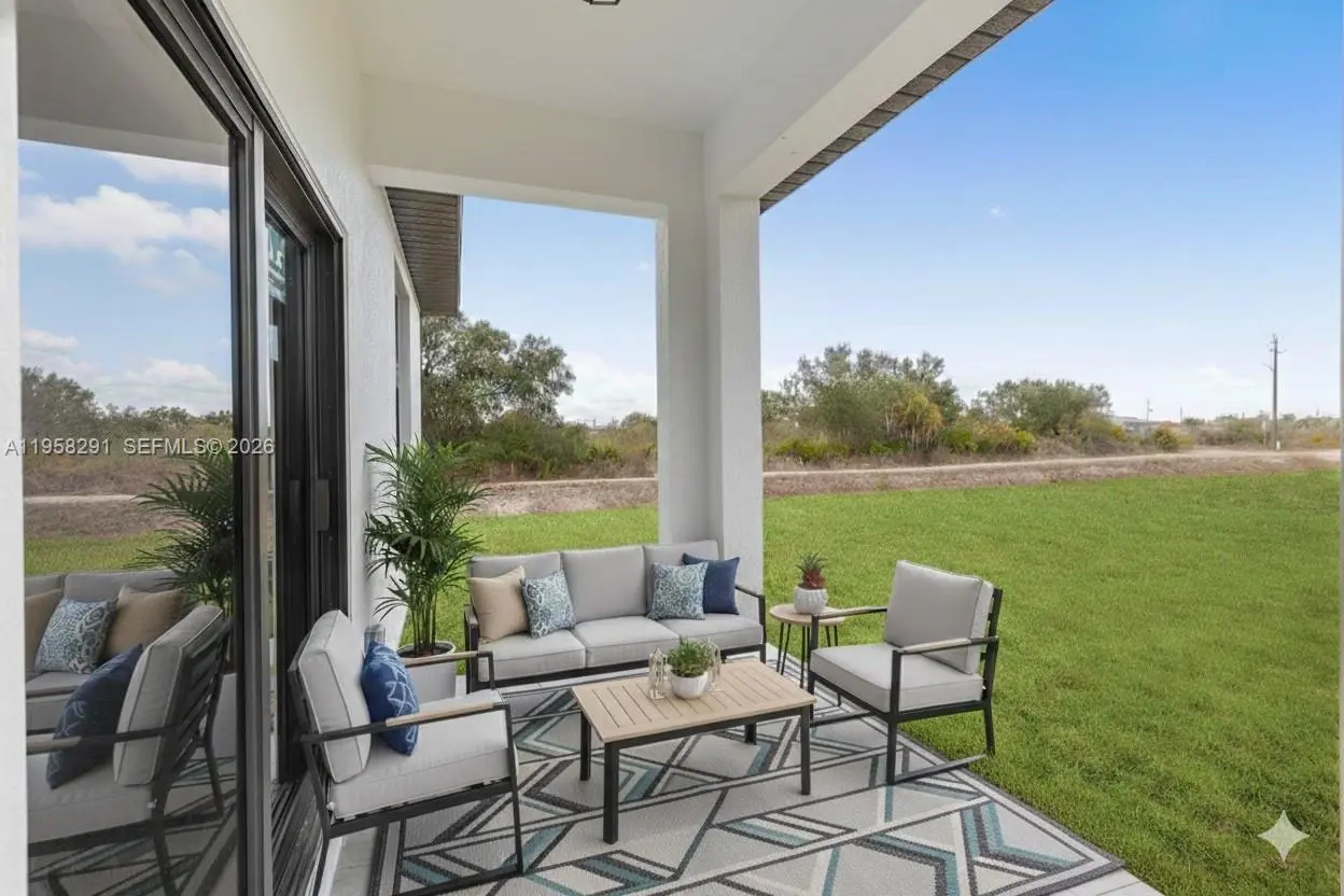 Seller is motivated and ready to make a deal! 10 Year Structural Warranty and 3% seller credit toward buyer’s closing costs with full-price offer. 100% completed and ready to move-in. Be sure to click on the 3D virtual tour! This beautifully designed new construction home sits on a corner lot and offers a modern living space. Featuring 3 bedrooms, 2 bathrooms, and a 1-car garage, the home includes 10-ft ceilings, hurricane-impact windows and doors, and washer/dryer installed in a separate laundry room. Enjoy 32x32 porcelain tile flooring throughout, high-profile baseboards, and a spacious kitchen with custom cabinetry, quartz countertops, and a full suite of Samsung stainless-steel appliances. Bathrooms showcase quartz finishes, glass shower doors, and premium fixtures. The property also includes a full irrigation system. Surrounded by new homes this residence combines style, quality, and value. Don’t miss your chance!
