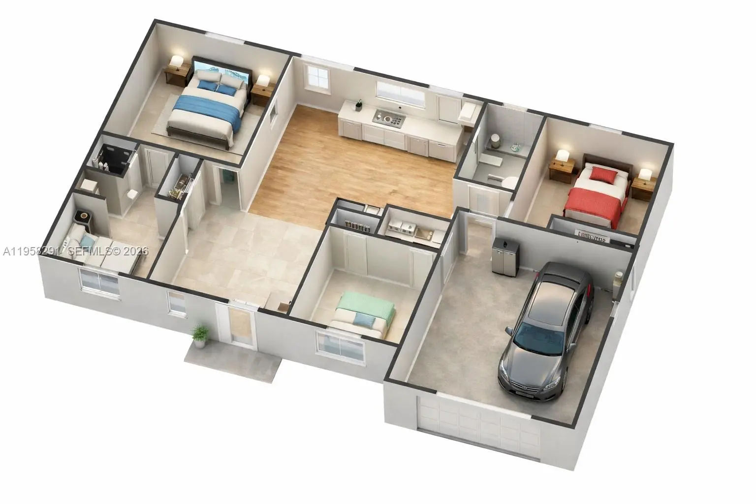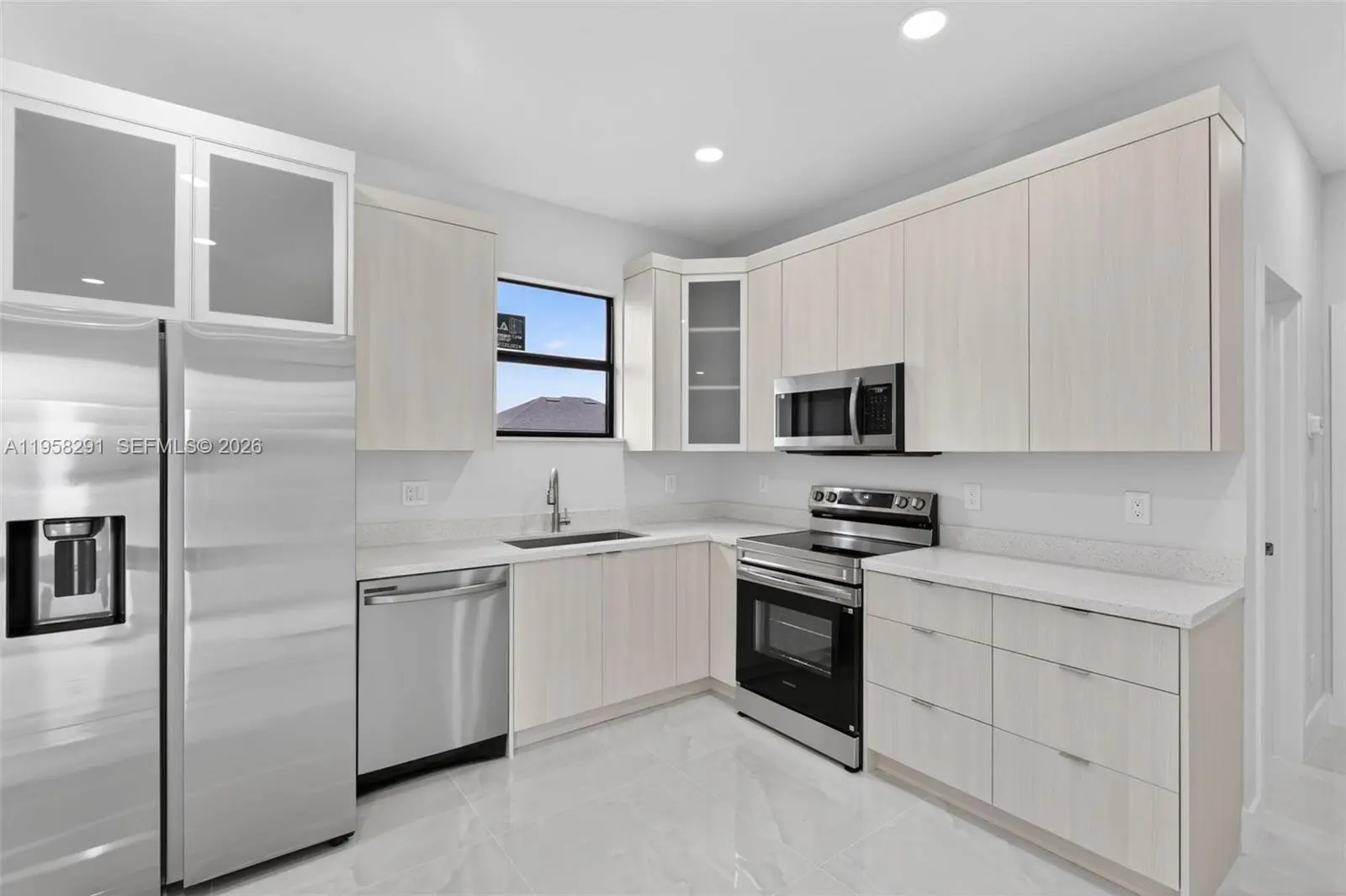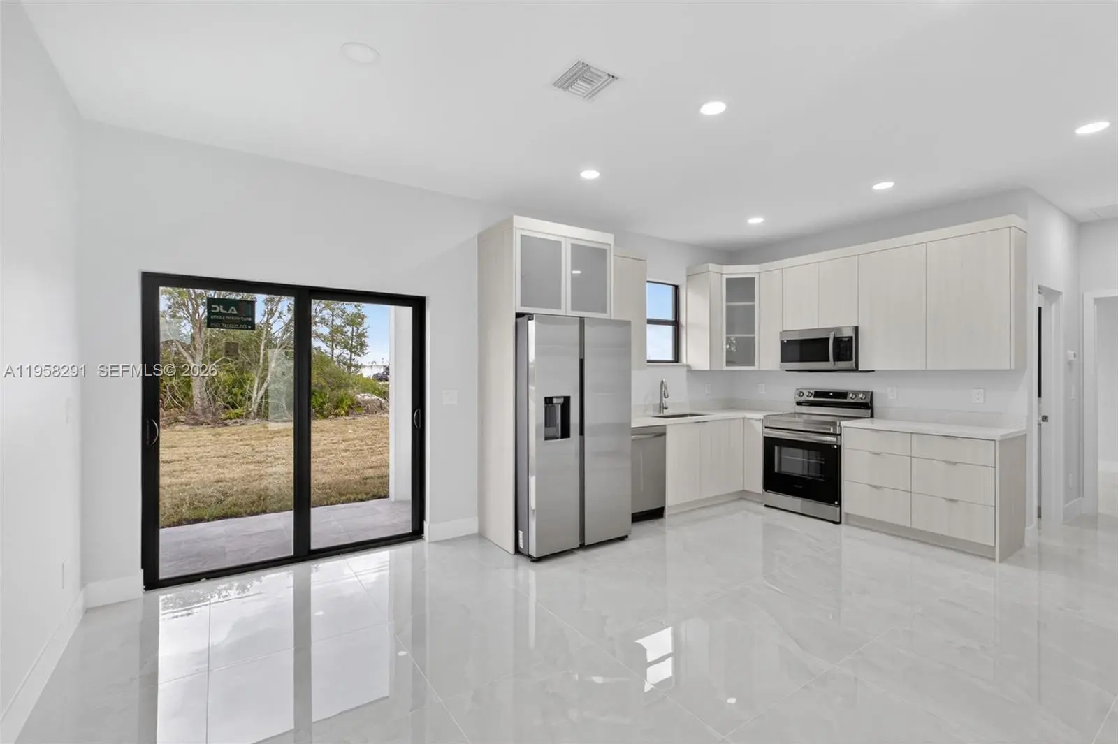 Seller is motivated and ready to make a deal! 10 Year Structural Warranty and 3% seller credit toward buyer’s closing costs with full-price offer. 100% completed and ready to move-in. Be sure to click on the 3D virtual tour! This beautifully designed new construction home sits on a corner lot and offers a modern living space. Featuring 3 bedrooms, 2 bathrooms, and a 1-car garage, the home includes 10-ft ceilings, hurricane-impact windows and doors, and washer/dryer installed in a separate laundry room. Enjoy 32x32 porcelain tile flooring throughout, high-profile baseboards, and a spacious kitchen with custom cabinetry, quartz countertops, and a full suite of Samsung stainless-steel appliances. Bathrooms showcase quartz finishes, glass shower doors, and premium fixtures. The property also includes a full irrigation system. Surrounded by new homes this residence combines style, quality, and value. Don’t miss your chance!