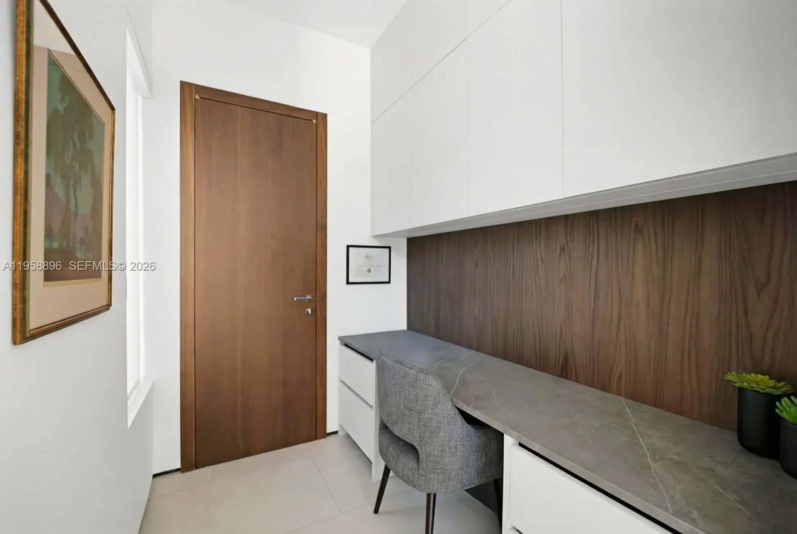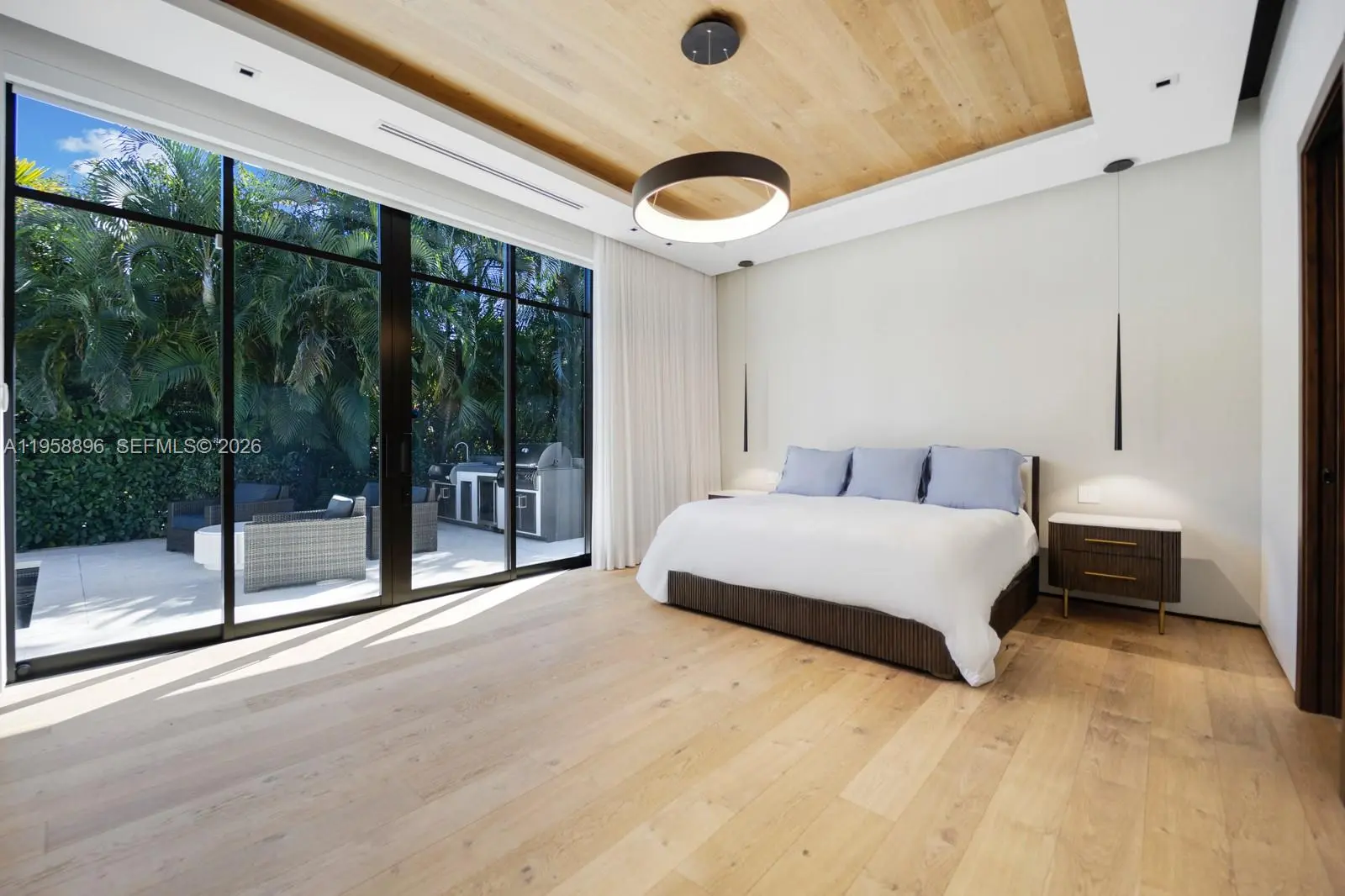 Experience modern luxury in the heart of Coral Gables. Designed for effortless living and entertaining, the open floor plan features volume ceilings and seamless indoor-outdoor flow. The Italian MiaCucina eat-in kitchen is a showpiece with Sub-Zero, Perlick, and Wolf appliances, custom bar and wine display, and a walk-in pantry with integrated laundry, including a custom 2 drawer Perlick refrigerator for convenience. The primary suite is a private retreat overlooking the pool, offering a large walk-in closet, an additional walk-in storage closet, and a spa-inspired bath with an oversized rainfall shower, floating vanity, and dual sinks. Outdoors, enjoy a saltwater pool with state-of-the-art heater and chiller, a private outdoor shower, and a custom-designed outdoor kitchen with a Fire Magic built-in grill and Perlick cooler. Additional features include Lutron smart home technology and a double-height garage ceiling built to accommodate a car lift. The home is equipped with integrated high-definition security cameras and a state-of-the-art security system for peace of mind. Enjoy Sonos audio throughout the main room, kitchen, master bath, and lanai, as well as Sony Master Series TVs in the main room, master suite, office, both guest bedrooms, and workout room. Magnificent landscaping too!