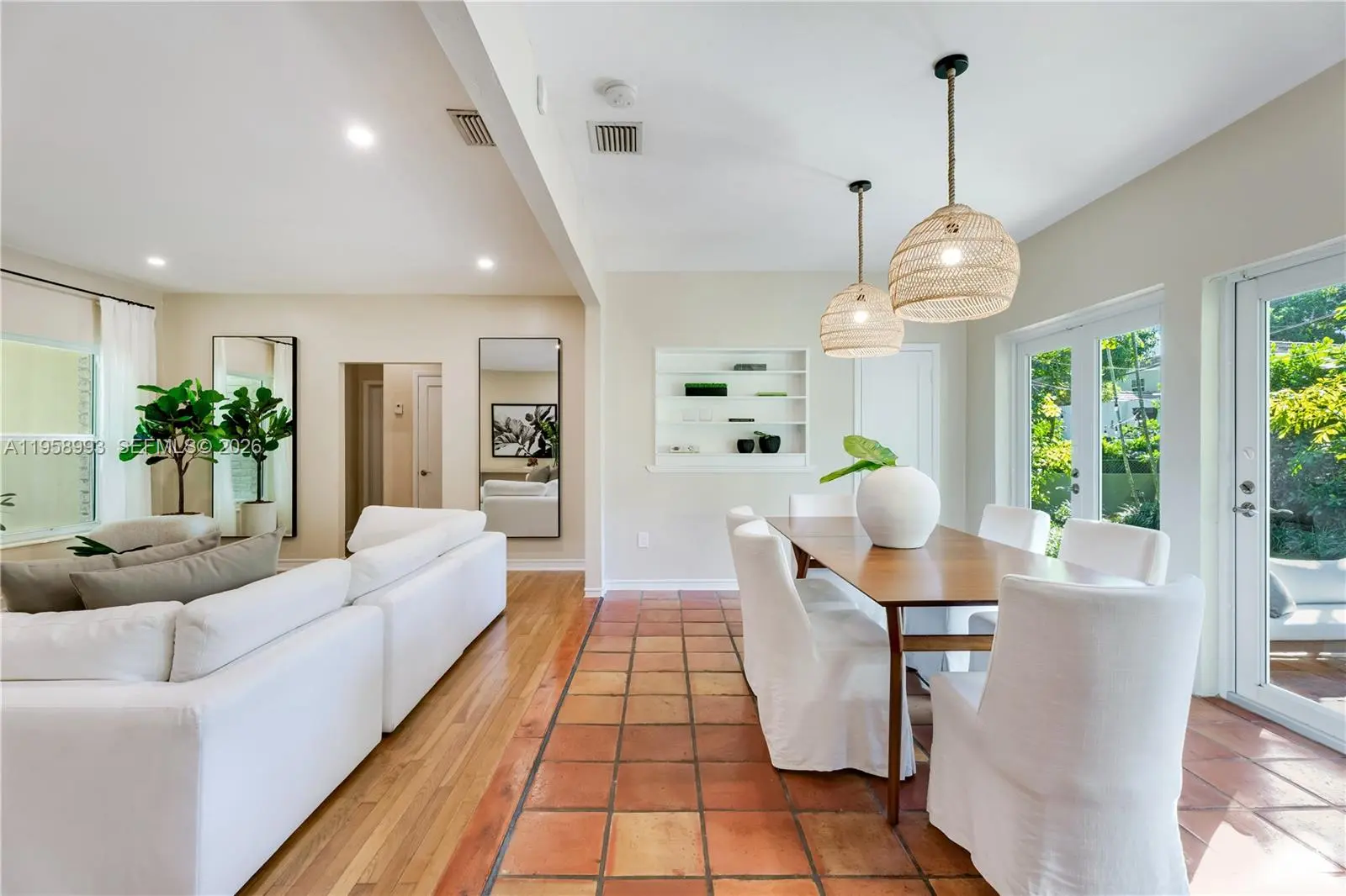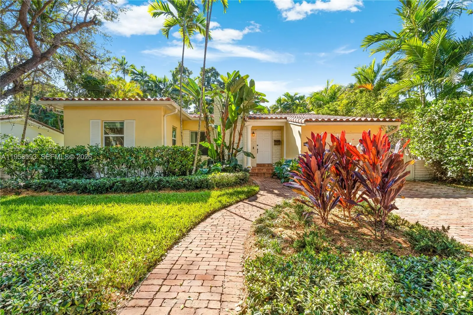 Charming home on 7500 sq. ft. lot in an exceptional Coral Gables location just minutes from the Youth Center, Coral Gables Library, downtown Coral Gables, and neighboring schools. This meticulously-maintained and move-in ready residence features an open, light-filled layout, fully renovated bathrooms and a modern primary suite with custom built-in cabinetry. Upgrades include PVC piping installed for brand new septic system and updated bathrooms, 2018 roof, impact windows, EV charging station, expanded brick driveway for additional parking space, and an air-conditioned garage being used as a flex space. Additional features include a flooring combination of hardwood and ceramic tiles, fireplace, alarm system, Eufy doorbell with camera, spacious backyard offering low-maintenance turf, two patio areas ideal for entertaining, and ample room for future expansion or a pool. An exceptional opportunity in one of the Gables’ most desirable neighborhoods.