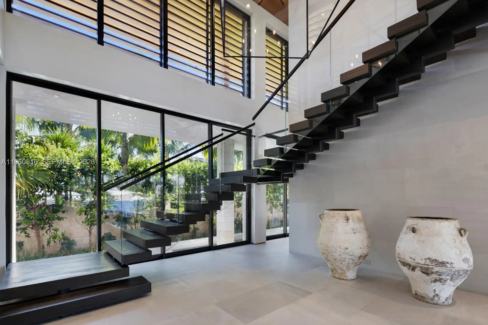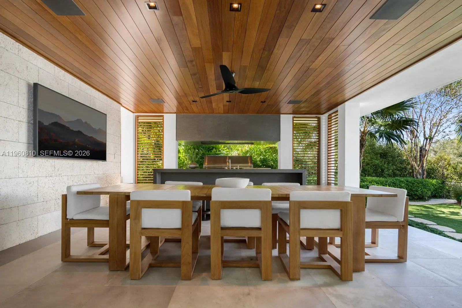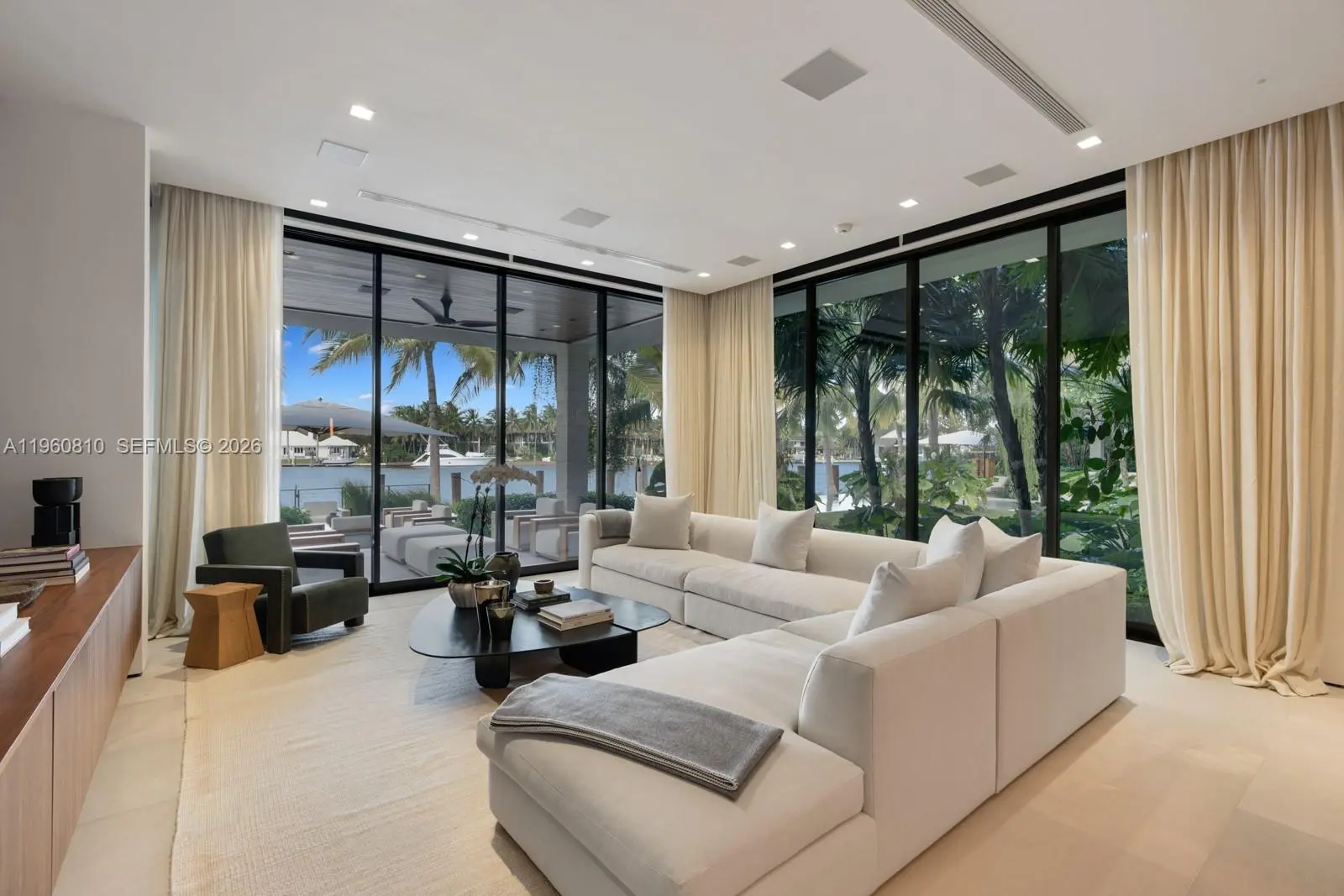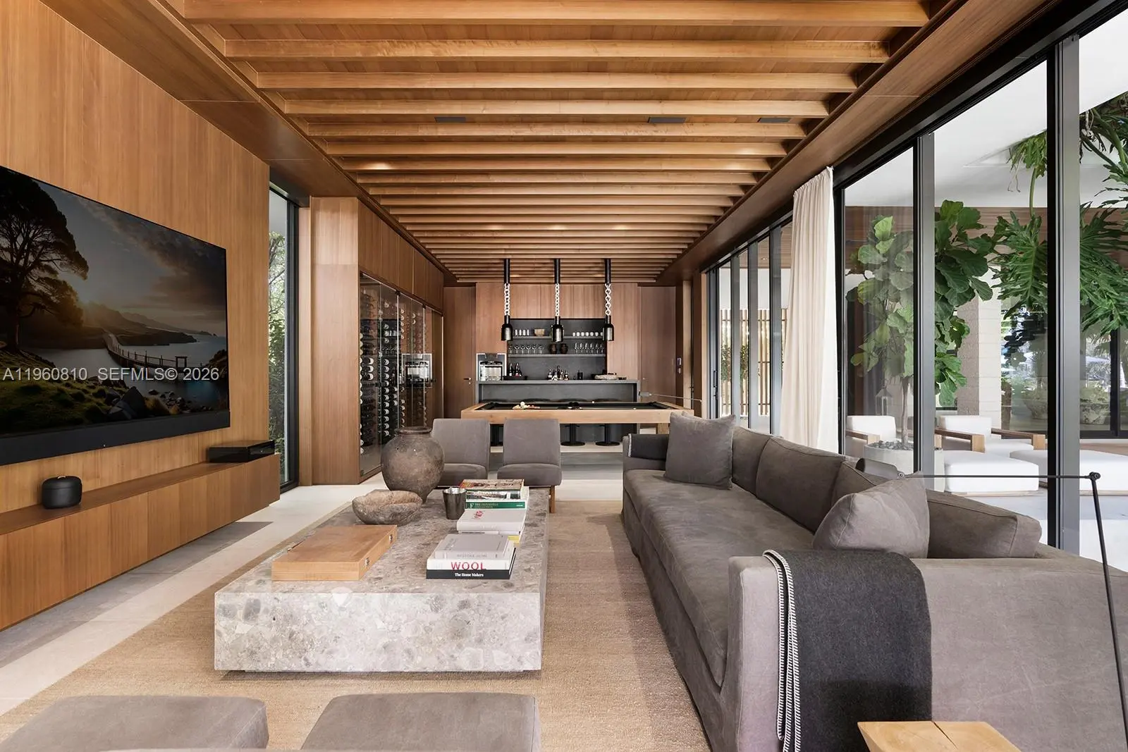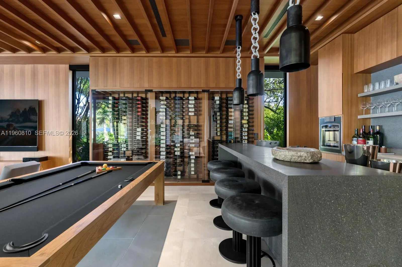 An architectural statement of modern waterfront elegance set within the private guard-gated enclave of Old Cutler Bay, this exceptional custom-built estate by renowned architect Cesar Molina showcases refined design and resort-inspired living. Framed by serene water features and lush tropical landscaping, the residence is defined by soaring volumes, expansive glass, and seamless indoor-outdoor integration, capturing tranquil water views while offering remarkable privacy. The home features five bedrooms plus a separate guest suite, currently utilized as a private office, along with a dedicated cabana lounge and fully equipped home gym. The chef’s kitchen is appointed with custom Mia Cucina cabinetry and a signature Officine Gullo range, blending performance with timeless Italian craftsmanship. Crestron smart home automation, Lutron lighting, an integrated interior and exterior sound system, and a full-house generator provide effortless luxury and convenience. Designed for elevated entertaining, the cabana lounge features a temperature-controlled wine wall, wine cellar, marble bar, and Officine Gullo built-in wine dispenser. Resort-style grounds showcase a summer kitchen with covered dining area, PebbleTec pool, putting green, and 180 feet of waterfront with Ipe dock with 200-amp electrical service, offering direct access to Biscayne Bay.