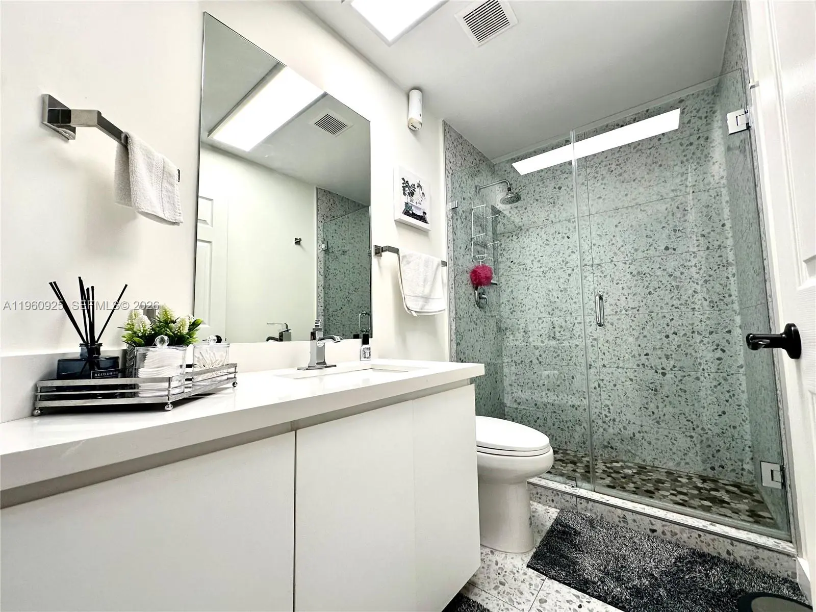 Stunning totally renovated on 2023, located on a 2nd Fl. residence situated on a tranquil and peaceful preserve setting. Gorgeous finishes include a modern contemporary open kitchen a boasting quartz center island, custom cabinets w/soft close doors/drawers, quartz countertops and new SS appliances & A/C. New electric & electric panel. Bright open living area with LED high-hats and high ceilings. High impact windows and sliding doors to an screen enclosed terrace. Beautiful updated bathrooms with white quartz top vanity, walk-in shower, seamless glass door and free standing bathtub. Includes a Car Garage. Fee includes cable, water, roof, insurance, pools & landscaping. A must see! Impecable unit, only 1 owner and used as a vacation home. Bring your pickiest clients. Furniture negotiable.